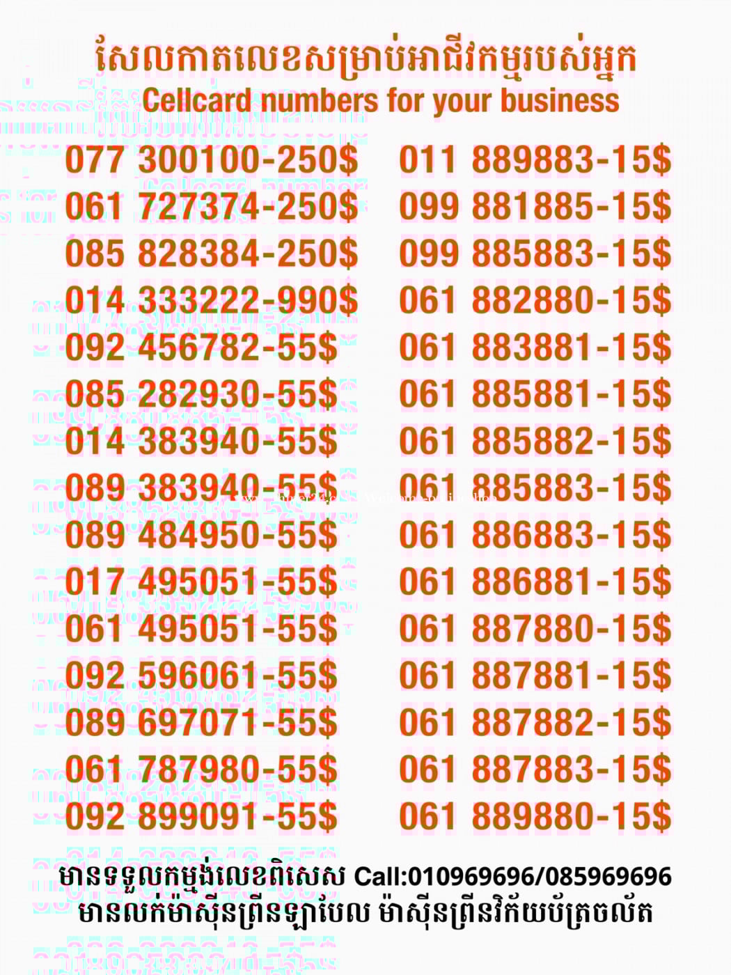 Cellcard លេខសម្រាប់អាជីវកម្ម