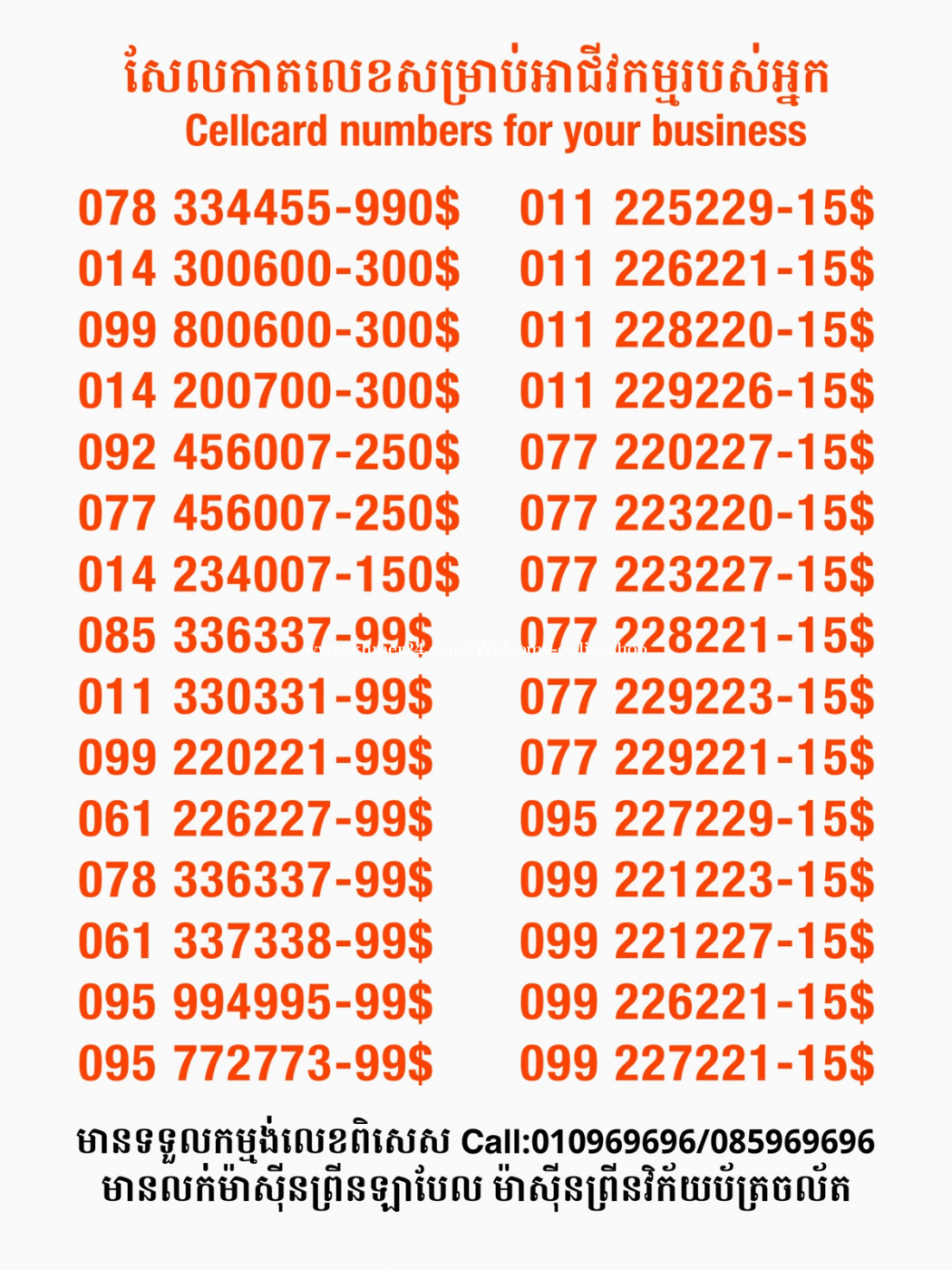 មានលក់លេខពិសេស មានទទួលកម្មង់លេខពិសេស មានលក់ម៉ាស៊ីនព្រីនឡាបែលចល័ត មានលក់ម៉ាស៊ីនព្រីនវិក័យប័ត្រចល័ត មានលក់សម្ភារៈប្រើប្រាស់ក្នុងគ្រួសារ Smart Prime II 1=30$ Smart hero 1=40$ ទូរសព្ទថ្មីក្នុងប្រអប់ លក់ធូរៗរហូតអស់ពីស្តុក អាចប្រើជាឧបករណ៍សម្រាប់ស៊ែរ wifi បាន ទំនាក់ទំនង(ខ្មែរ | English | 中文):010969696 | 085969696 Telegram: https://t.me/W9696 Telegram group: https://t.me/konkonnada អាសយដ្ឋាន:ផ្ទះលេខ២៣ ផ្លូវបេតុងលេខ១ ភូមិទួលពង្រ សង្កាត់ចោមចៅ ខណ្ឌពោធិ៍សែនជ័យ រាជធានីភ្នំពេញ ទីតាំង https://goo.gl/maps/8moqW4iTHUfJEvWQ9 ដើម្បីស្វែងរកលេខអាជីវកម្មដែលលោកអ្នកពេញចិត្ត សូមចូលទៅកាន់:https://www.khmer24.com/Welcome-onlineshop