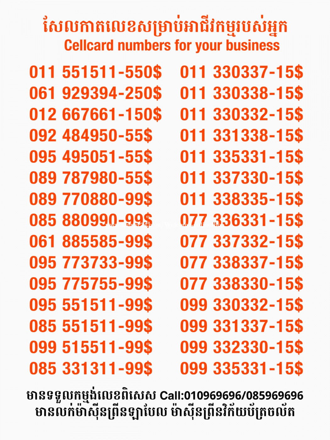មានលក់លេខពិសេស មានទទួលកម្មង់លេខពិសេស មានលក់ម៉ាស៊ីនព្រីនឡាបែលចល័ត មានលក់ម៉ាស៊ីនព្រីនវិក័យប័ត្រចល័ត មានលក់សម្ភារៈប្រើប្រាស់ក្នុងគ្រួសារ Smart Prime II 1=30$ Smart hero 1=40$ ទូរសព្ទថ្មីក្នុងប្រអប់ លក់ធូរៗរហូតអស់ពីស្តុក អាចប្រើជាឧបករណ៍សម្រាប់ស៊ែរ wifi បាន ទំនាក់ទំនង(ខ្មែរ | English | 中文):010969696 | 085969696 Telegram: https://t.me/W9696 Telegram group: https://t.me/konkonnada អាសយដ្ឋាន:ផ្ទះលេខ២៣ ផ្លូវបេតុងលេខ១ ភូមិទួលពង្រ សង្កាត់ចោមចៅ ខណ្ឌពោធិ៍សែនជ័យ រាជធានីភ្នំពេញ ទីតាំង https://goo.gl/maps/8moqW4iTHUfJEvWQ9 ដើម្បីស្វែងរកលេខអាជីវកម្មដែលលោកអ្នកពេញចិត្ត សូមចូលទៅកាន់:https://www.khmer24.com/Welcome-onlineshop