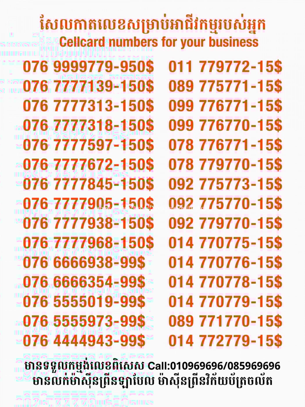 Cellcard លេខសម្រាប់អាជីវកម្ម