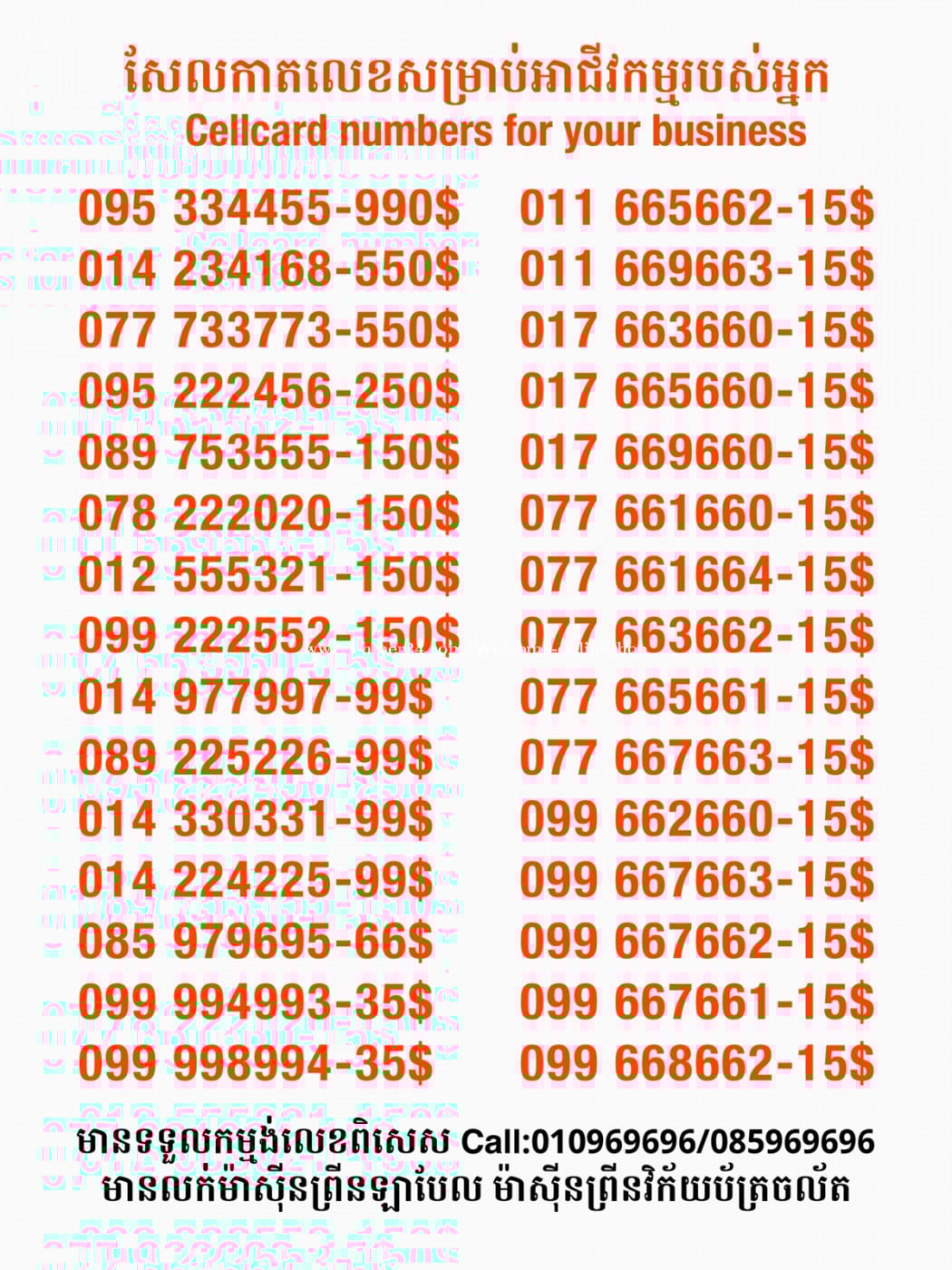 មានលក់លេខពិសេស មានទទួលកម្មង់លេខពិសេស មានលក់ម៉ាស៊ីនព្រីនឡាបែលចល័ត មានលក់ម៉ាស៊ីនព្រីនវិក័យប័ត្រចល័ត មានលក់សម្ភារៈប្រើប្រាស់ក្នុងគ្រួសារ Smart Prime II 1=30$ Smart hero 1=40$ ទូរសព្ទថ្មីក្នុងប្រអប់ លក់ធូរៗរហូតអស់ពីស្តុក អាចប្រើជាឧបករណ៍សម្រាប់ស៊ែរ wifi បាន ទំនាក់ទំនង(ខ្មែរ | English | 中文):010969696 | 085969696 Telegram: https://t.me/W9696 Telegram group: https://t.me/konkonnada អាសយដ្ឋាន:ផ្ទះលេខ២៣ ផ្លូវបេតុងលេខ១ ភូមិទួលពង្រ សង្កាត់ចោមចៅ ខណ្ឌពោធិ៍សែនជ័យ រាជធានីភ្នំពេញ ទីតាំង https://goo.gl/maps/8moqW4iTHUfJEvWQ9 ដើម្បីស្វែងរកលេខអាជីវកម្មដែលលោកអ្នកពេញចិត្ត សូមចូលទៅកាន់:https://www.khmer24.com/Welcome-onlineshop
