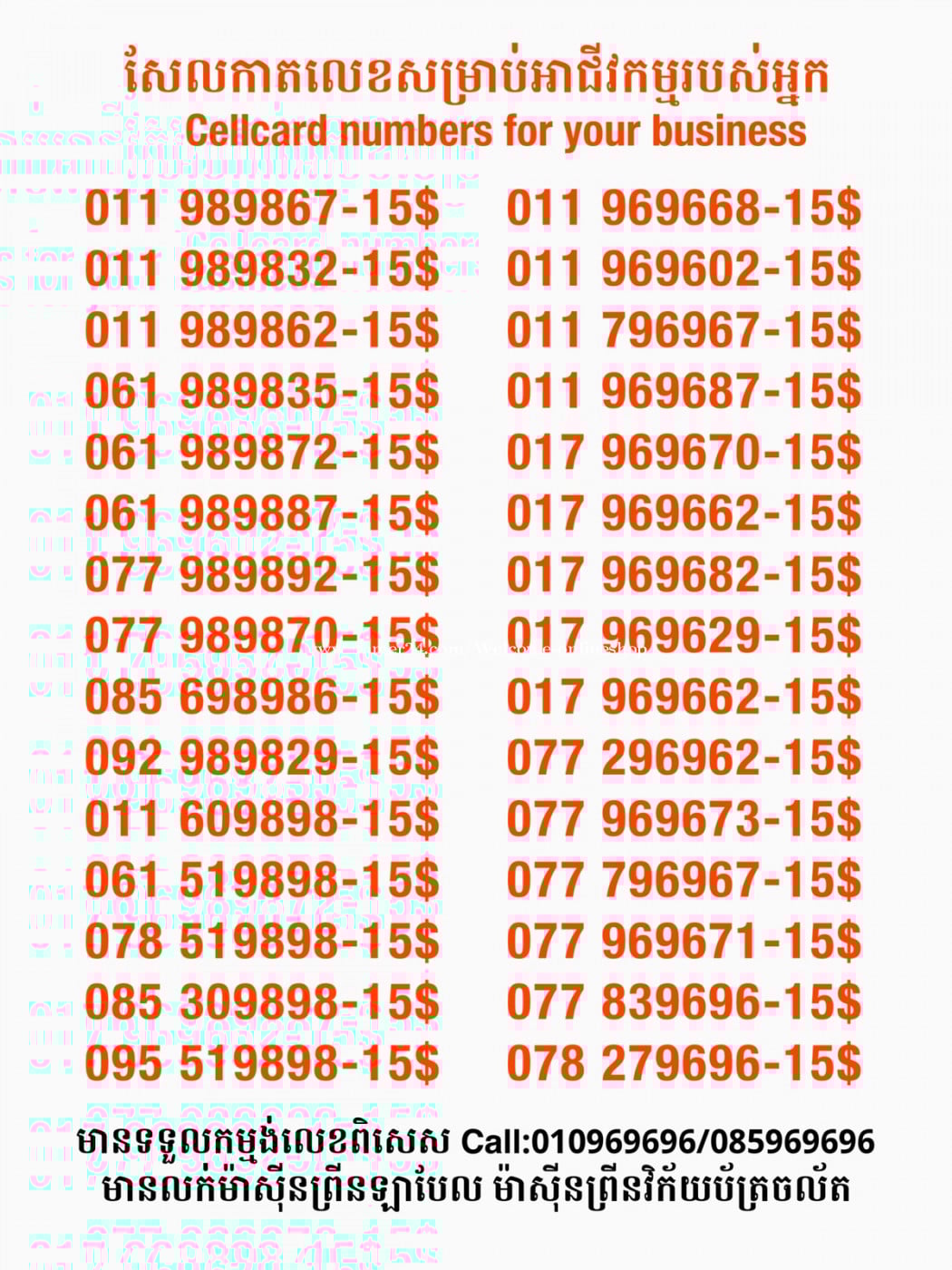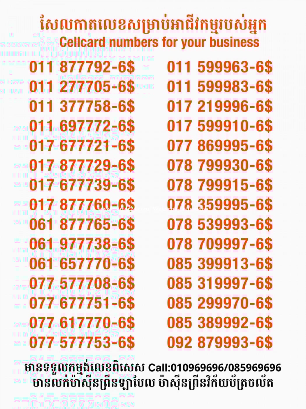 មានលក់លេខពិសេស មានទទួលកម្មង់លេខពិសេស មានលក់ម៉ាស៊ីនព្រីនឡាបែល មានលក់ម៉ាស៊ីនព្រីនវិក័យប័ត្រ មានលក់សម្ភារៈប្រើប្រាស់ក្នុងគ្រួសារ Smart Prime II 1=30$ Smart hero 1=40$ ទូរសព្ទថ្មីក្នុងប្រអប់ លក់ធូរៗរហូតអស់ពីស្តុក អាចប្រើជាឧបករណ៍សម្រាប់ស៊ែរ wifi បាន ទំនាក់ទំនង(ខ្មែរ | English | 中文):010969696 | 085969696 Telegram: https://t.me/W9696 Telegram group: https://t.me/konkonnada អាសយដ្ឋាន:ផ្ទះលេខ២៣ ផ្លូវបេតុងលេខ១ ភូមិទួលពង្រ សង្កាត់ចោមចៅ ខណ្ឌពោធិ៍សែនជ័យ រាជធានីភ្នំពេញ ទីតាំង https://goo.gl/maps/8moqW4iTHUfJEvWQ9 ដើម្បីស្វែងរកលេខអាជីវកម្មដែលលោកអ្នកពេញចិត្ត សូមចូលទៅកាន់:https://www.khmer24.com/Welcome-onlineshop