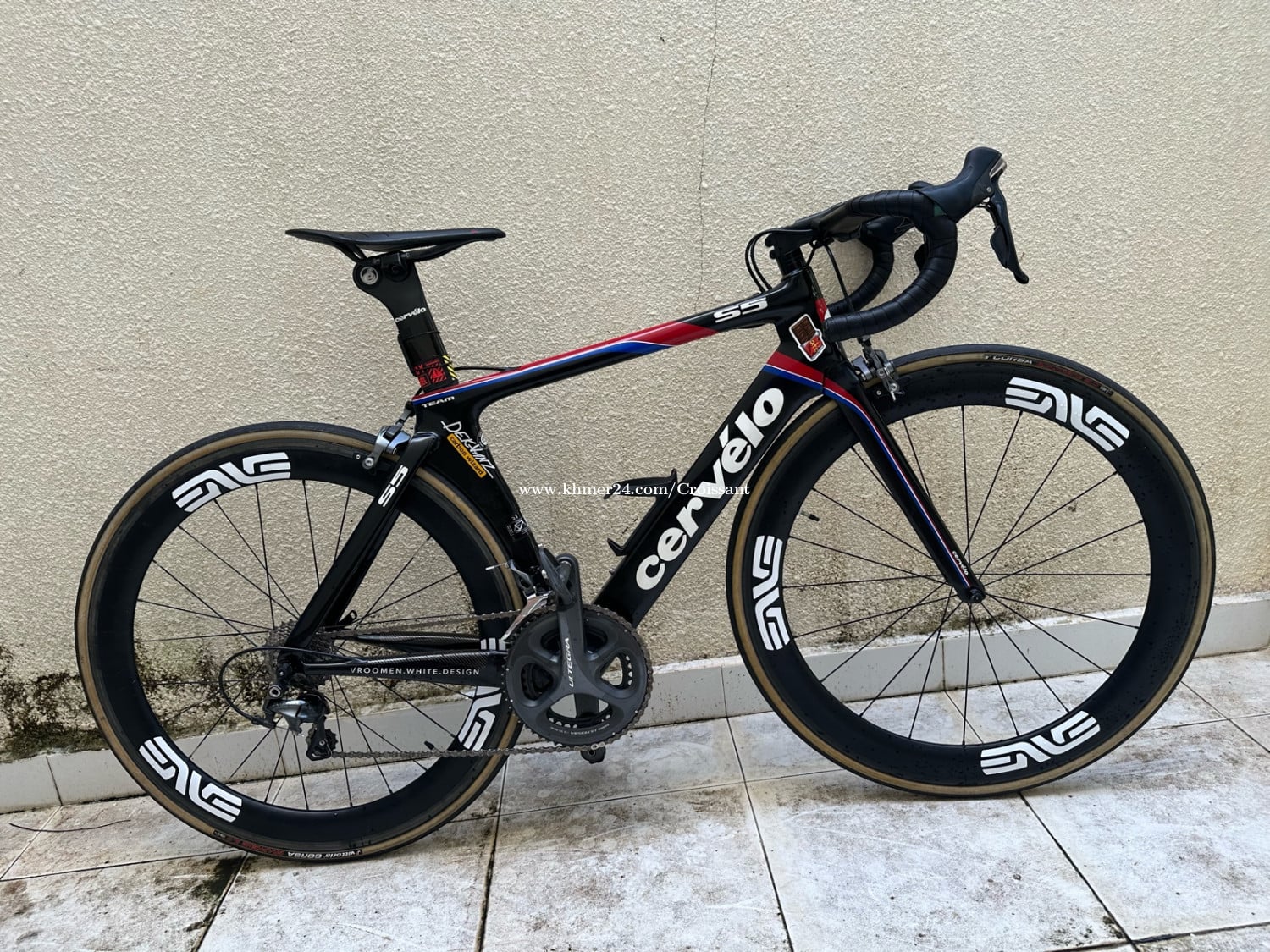 Cervelo S5 original frame (Vroomwhite edition) ខ្សែរក្នុងតួ size 51 cervelo (1.63-1.75m) Limited team edition កង់តំលៃថ្មី 6-7K កង់ Full Aero speed 50km/hr + តួមានតែ 1 ទេស្រុកខ្មែរ Full carbon Groupset shimano ultegra full set (11 speed) Crankset 53T កែប Fizik Arione carbon rail Handle bar S-works ខ្មង carbon 60mm (មាន 2-3 ទៀតអោយរើស) សំបក Victoria corsa កង់ Service ហើយស្រាច យកទៅជិះបានមិនបាច់ធ្វើ បំបែក Frame + handle bar + seat = $750 Groupset ultegra full set 95% = $375 ខ្នង+ពោះវៀន+សំបក Victoria corsa = 300$ បំបែកតំលៃអត់ចចារ យកកង់មកដូរថែមលុយបាន ភ្នំពេញ មើលផ្ទាល់បាន