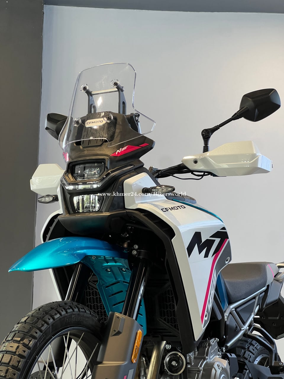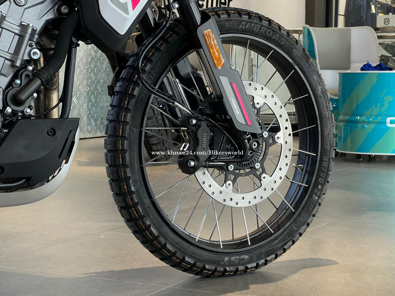 Engine : 2-cylinder, inline 4-stroke, liquid-cooled, DOHC, 270° crankshaft Displacement : 449cc Bore x Stroke : 72×55.2 mm Power : 31kW/8500 rpm Torque : 42Nm/6500 rpm Fuel System :BOSCH EFI Compression Ratio : 11.5:1 Transmission : CF-SC slipper clutch, 6-speed, wet, multi-plate Throttle Type : Mechanical throttle Length x Width x Height : 2210 x 870 x 1390 mm Wheelbase : 1505 mm Seat Height : 840mm / 800mm available by change linkage bolt position Ground Clearance : 220 mm Fuel Capacity : 17.5 L Weight : 185 kg (Mass in running order) Front Brake : Φ320mm single disc, four-piston caliper, J.Juan Rear Brake : Φ240mm single disc, single-piston caliper, J.Juan Front Tire : 90/90 R21 CST Rear Tire : 140/70 R18 CST Rim : Wire-spoked rims (tubeless) ABS : BOSCH dual-channel ABS (rear ABS switchable) Traction Control : BOSCH TCS Headlight : LED Charging Port : 18w USB Type-A & Type-C