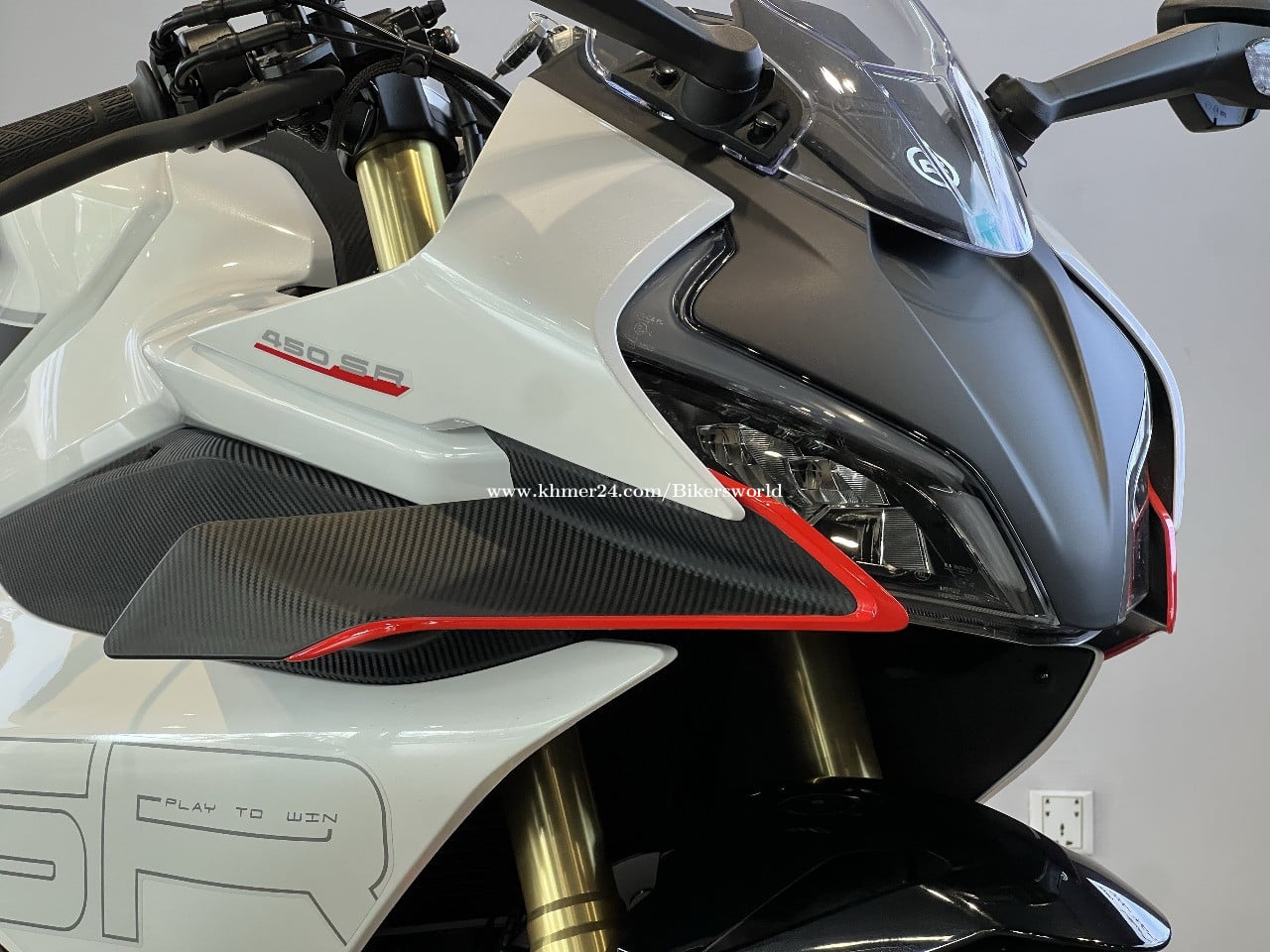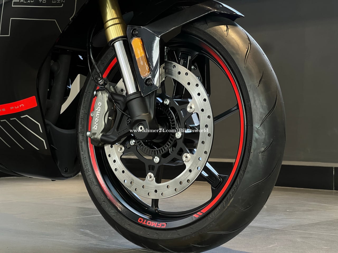 Engine Type : 449.5cc, twin-cylinder inline, liquid-cooled, 4-stroke, DOHC Displacement : 449.5cc Bore x Stroke : 72 mmx55.2 mm Power : 38kW/9500rpm Torque : 40Nm/7750rpm Compression Ratio : 11.5:1 Clutch Type : Wet, mulit-plate, slipper clutch, 6-speed Length x Width x Height : 1990mm x 715mm x 1165mm Wheelbase : 1370 mm Seat Height : 795 mm Minimum Ground Clearance : 140 mm Fuel Capacity : 14 L Curb Weight : 179 kg Front Suspension : Φ37mm USD forks Rear Suspension : Monoshock Front Brake : Φ320mm single disc, opposed four-piston caliper Rear Brake : Φ220mm single disc, single-piston caliper Front tire : 110/70 R17 Rear tire : 150/60 R17 ABS : ABS