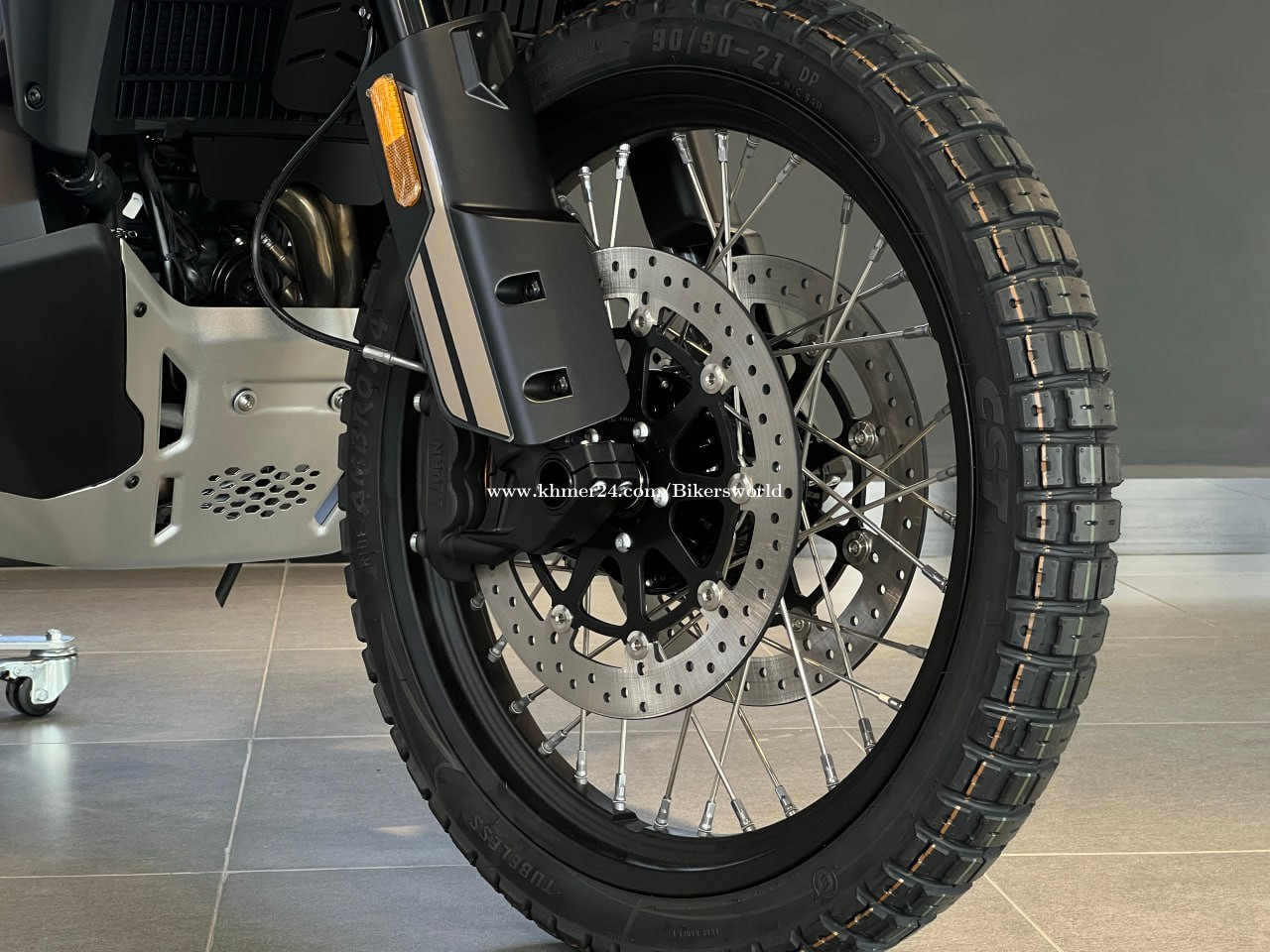 Engine Type : 2-cylinder Inline, Liquid-cooled, EFI, 8 Valves, DOHC Displacement : 799cc Bore x Stroke : 88.0×65.7 mm Max Power : 70kW/8500rpm Max Torque : 87N.M/6750rpm Compression Ratio : 12.7:1 Clutch Type : Wet,Mulit-plate,Slipper Clutch Emission : Euro V+ Length x Width x Heigth : 2288x945x1426 mm Wheelbase : 1530 mm Seat Height : 830/870 mm Fuel Tank : 22.5L (Additional 8L with accessory rear fuel tank) Curb Weight : 220 kg Front Suspension : 48mm Inverted, Fully Adjustable Sports Shock Absorption Rear Suspension : Single Shock Absorber, Fully Adjustable Sports Shock Absorption Front/Rear Suspension Stroke : 230/230 mm Front Brake : 320mm Twin Discs, Radial Caliper Rear Brake : 260mm Single Disc, Dual-piston Calipers Rim : 21-18“ Center Mounted Spoke Wheel Rim Front Tire : 90/90 R21 Rear Tire : 150/70 R18 ABS&CBS : Straight ABS & Curved ABS TCS (Traction Control System) : TCS