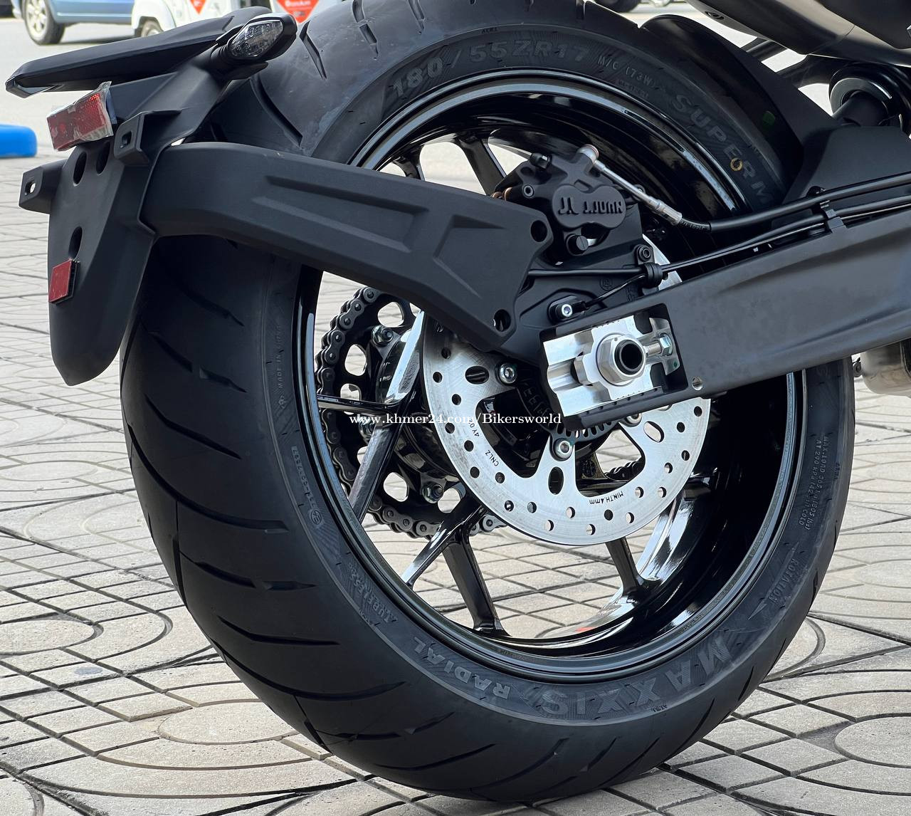Engine Type : Twin cylinder, DOHC Displacement : 799cc Bore x Stroke : 88.0×65.7 mm Maximum Power : 74kW/9000rpm Maximum Torque : 81N·m/8000rpm Fuel System : EFI Transmission : Wet, Multi-plate slipper clutch Length x Width x Height : 2132x810x1158mm Wheelbase : 1468mm Minimum Ground Clearance : 150mm Curb Weight : 186/189kg Fuel Capacity : 15L Brake : Front: 320mm double disc Rear: 260mm single disc Suspension : Front: Upside down and adjustable,KYB Rear: Mono suspension,adjustable,KYB Rim : Alluminum alloy Tire : Front: 120/70 R17 MAXXIS Rear: 180/55 R17 MAXXIS