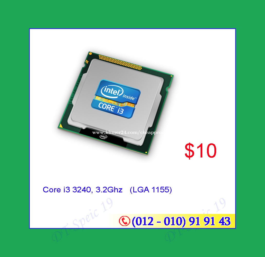 ⭐️=>CPU Socket 1155 - Pentium G620 2.6Ghz (Socket 1155) :$7 - Core i3 2100, 3.1Ghz (LGA 1155): $9 - Core i3 3220, 3.2Ghz (LGA 1155): $9.9 - Core i3 3240, 3.2Ghz (LGA 1155): $10 ***#: 24-0423 **ទំនិញមានក្នុងស្តុក 👉សំរាប់ការកម្មង់ទិញ ឬ ពត៍មានបន្ថែម សូម CALL ទាក់ទងលេខខាងក្រោម៖ ------------------------------------------------- ☎️ H/P: 010919xxxClick To Call | 012919xxxClick To Call ------------------------------------------------- Welcome! Retail and Dealers -We care on Quality | Trustworthy | Reasonable Price -We also offer wholesale, Retail and Repair (Hardware Software) all kinds of new & used computers, Laptops, spare-parts. ⭐️=>CPU Socket LGA 775 - Core 2 duo 3.3Ghz (E8600) :$6 - Core 2 quad 2.33/4m (Q8300) :$13=> $10 - Core 2 quad Q9550 2.83Ghz/12m :$19=> $15 - Core 2 quad Q9650 3.0Ghz/12m :$25=> $19 ⭐️=>CPU Socket 1156 - Core i3 530, 2.9 Ghz (LGA 1156): $9 - Core i5 650, 3.2 Ghz (LGA 1156): $15 - Core i5 760, 2.8Ghz (LGA 1156): $17 - Core i7 860, 2.8Ghz (LGA 1156): $25 ⭐️=>CPU Socket 1155 - Pentium G620 2.6Ghz (Socket 1155) :$8 - Core i3 2100, 3.1Ghz (LGA 1155): $10 - Core i3 3220, 3.2Ghz (LGA 1155): $9.9 - Core i3 3240, 3.2Ghz (LGA 1155): $10 - Core i5 3570 3.4Ghz (LGA 1155):$25 - Core i7 3770 3.4Ghz (LGA 1155):$45 ⭐️=>CPU Socket 1150 Core i3 4130 3.4Ghz (4th Gen):$25 Core i5 4570 3.2Ghz (4th Gen):$39 ** Core i5 4590 3.3Ghz (4th Gen):$40 👉👉មានតែCPUប្រភេទខាងលើ មិនមានប្រភេទ CPU ផ្សេងទេ => New SSD * SSD 120GB : $16 * SSD 256GB: $24 * SSD 512GB: $37