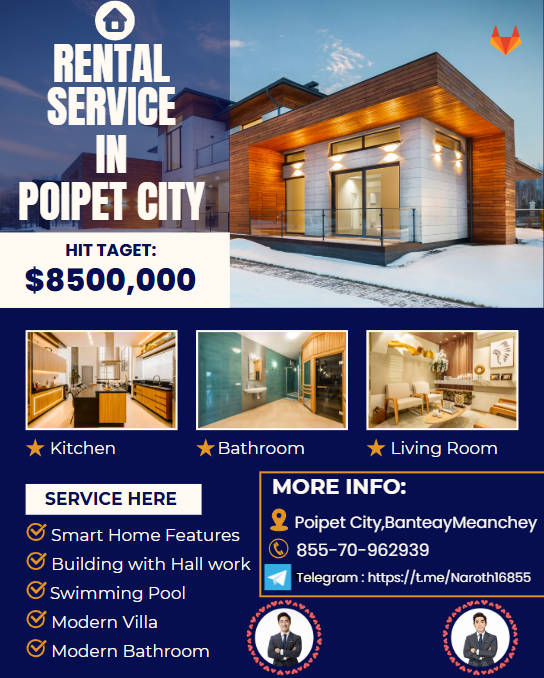 8Villa for Rent In Poipet City07, Nov 2025 • Krong Paoy Paet, Banteay MeancheyRent • more Bedroom • more Bathroom$8,500