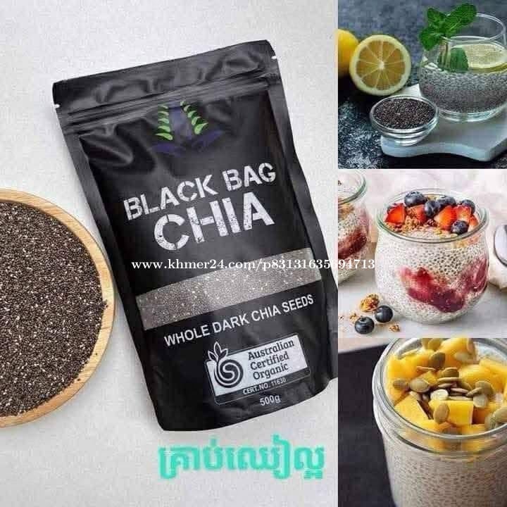 គ្រាប់ឈៀ Black Bag CHIA ផលិតផល Australia មានជាកញ្ចប់ កន្លះគីឡូ អាចកម្មង់បានបងៗ 500g =4$ មានសេវាកម្មដឹកជញ្ជូន 25 ខេត្តក្រុង Tel: 069818xxxClick To Call