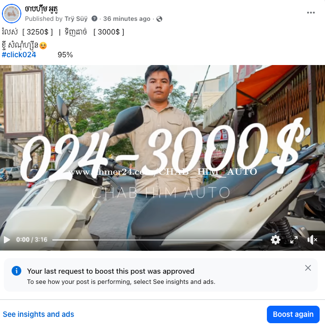 Telegram : 0969192xxxClick To Call វីដេអូលម្អិត : https://www.facebook.com/share/v/1KvPPA1Wx8/