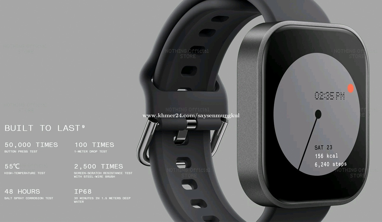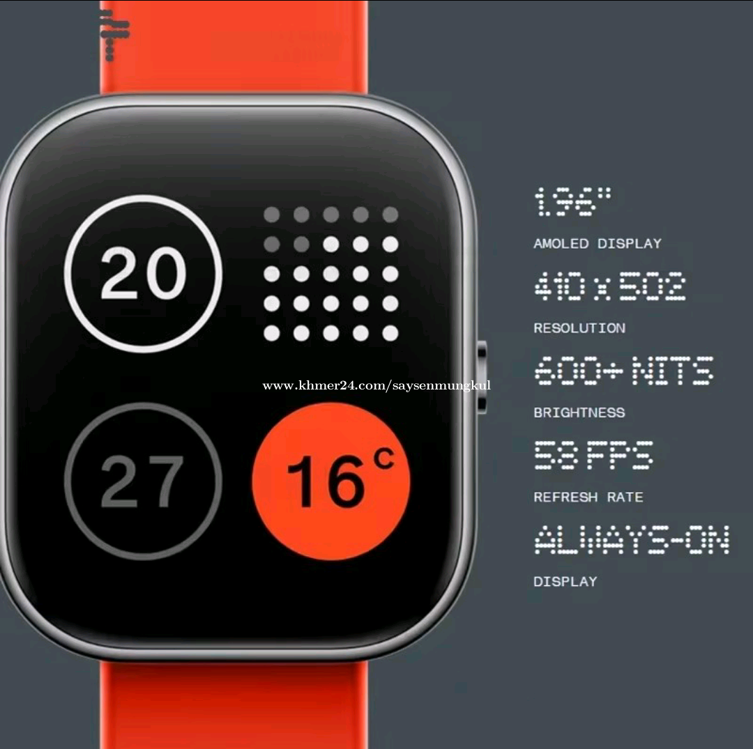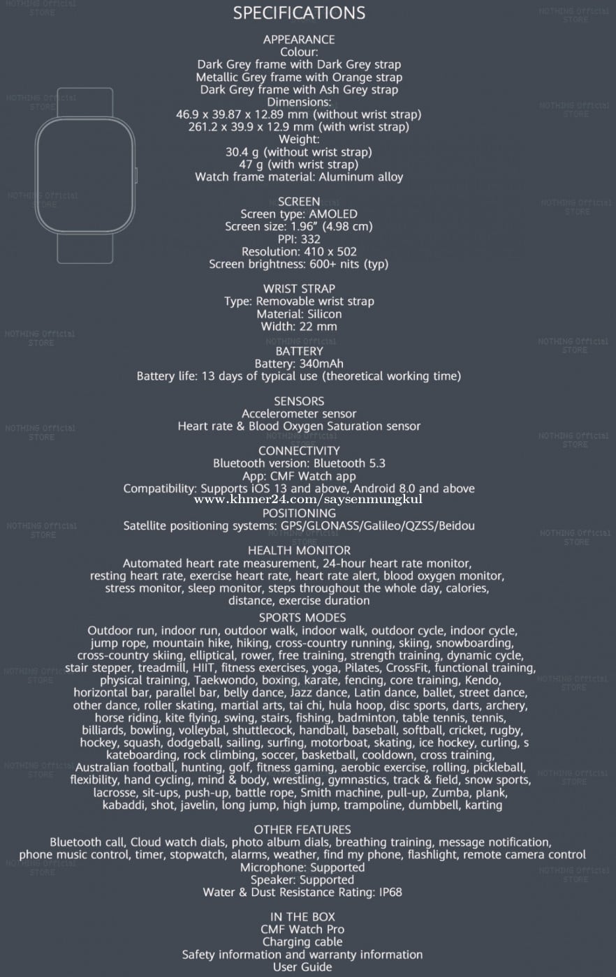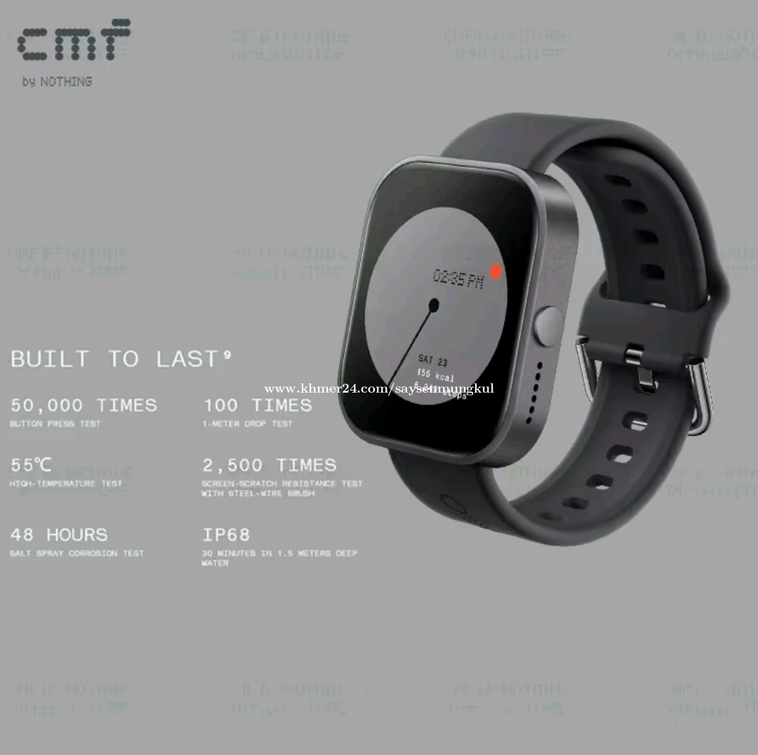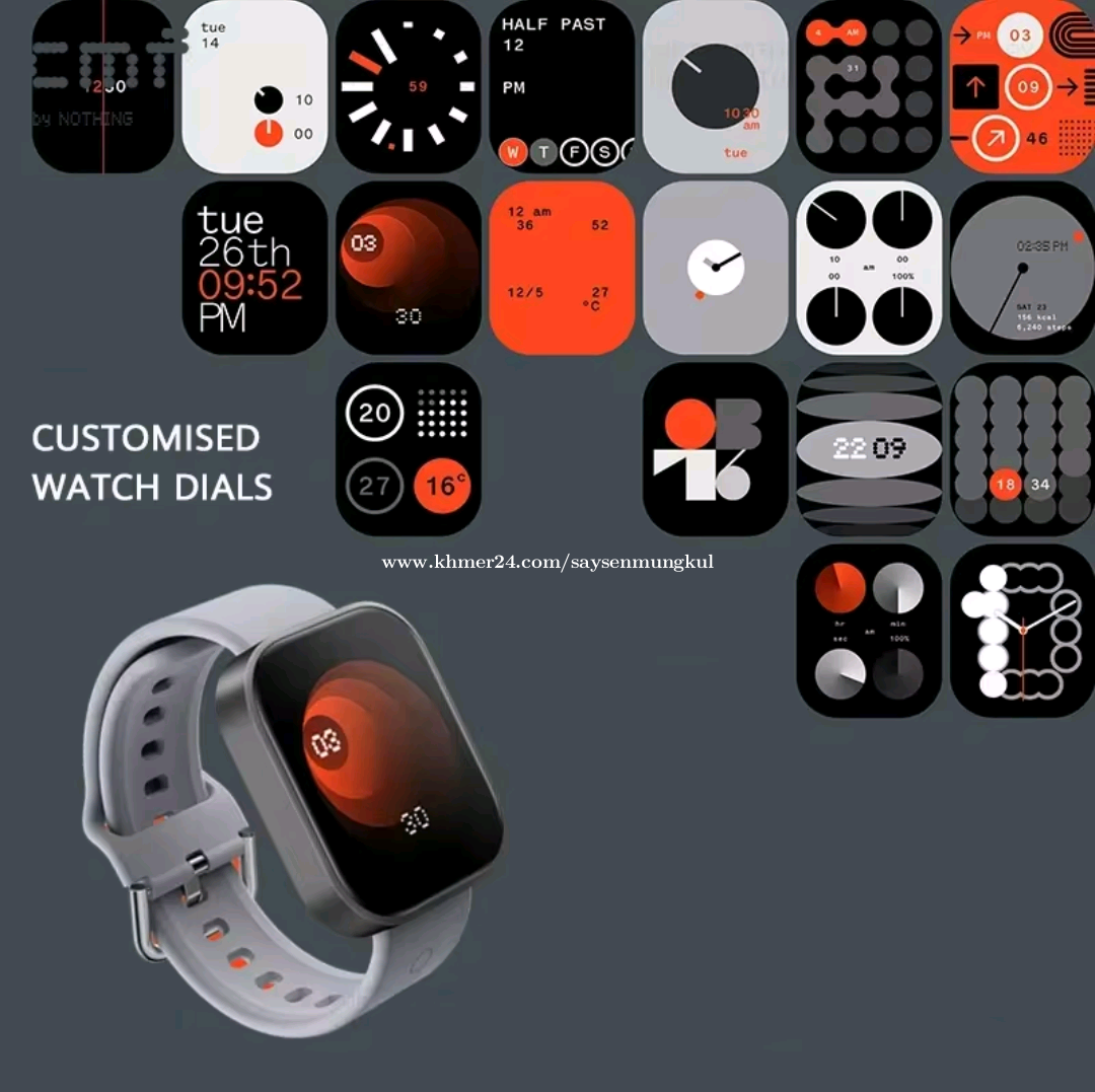 នាឡិកាឆ្លាតវៃរបស់ Nothing phone ប្លែកអេក្រង់លាយទាន់សម័យ CMF Watch Pro 1.96" AMOLED Bluetooth 5.3 BT Calls with Al Noise Reduction Smartwatch Spec: M29_K8