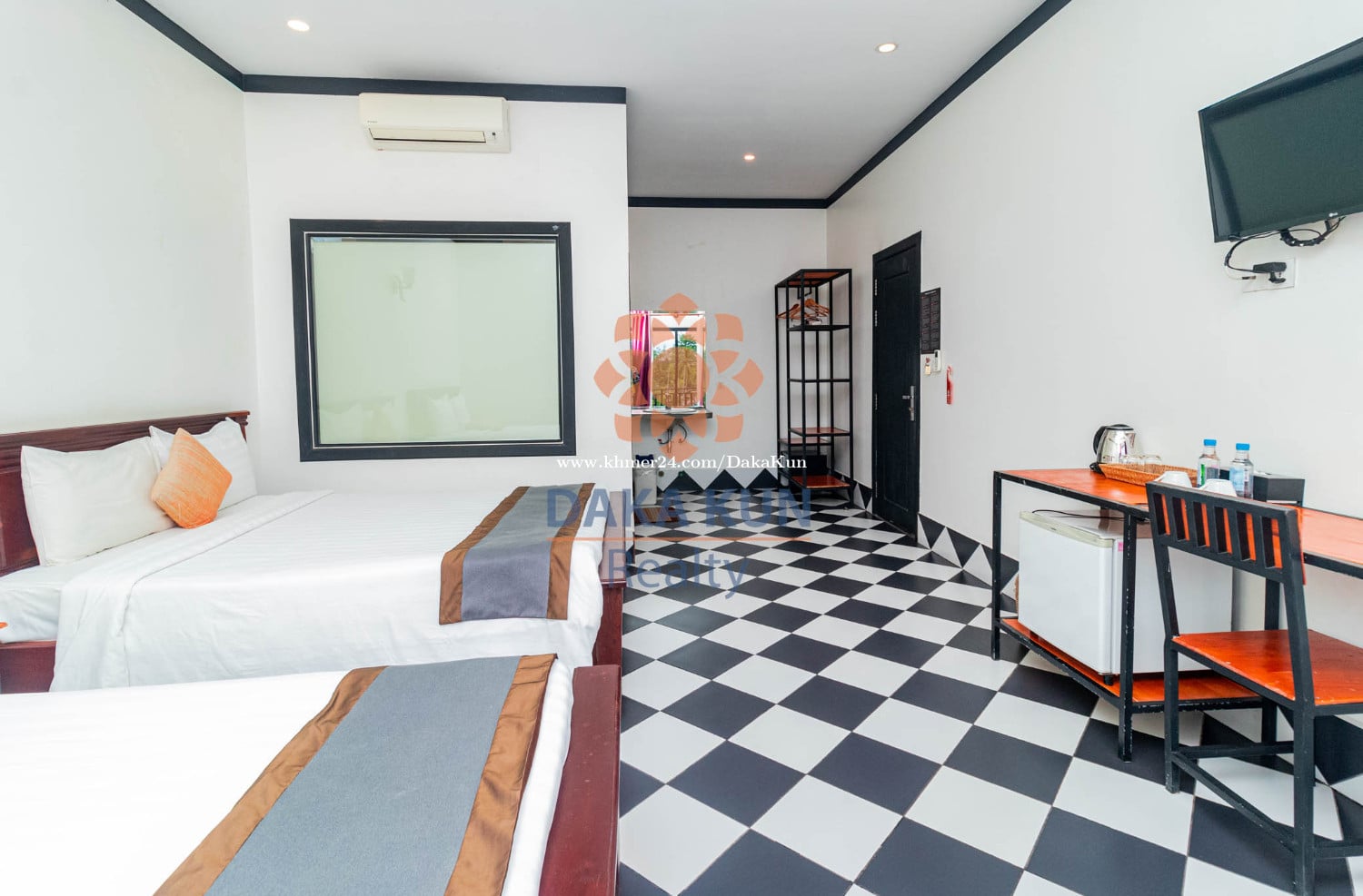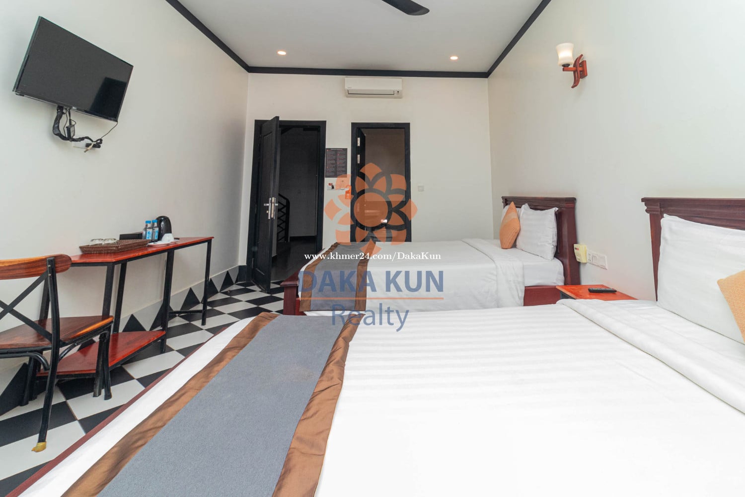 Contact Daka Kun Realty at 089899xxxClick To Call/012390xxxClick To Call ( WhatsApp & Telegram) or Email: inq****@dakakunrealty.comClick To Sent Email Property ID: DC1004 Rental Price: USD 1,900 Per month • Total: 10 Rooms • Lobby, Cafe and Bar • Balcony and Swimming Pool • Restaurant and Kitchen • Fully Furnished • Located in a commercial area, on main Road • Location: Wat Damnak Area, Sangkat Sala Kamreuk, Siem Reap City —---------------------------------------------------------------------------- More option: www.dakakunrealty.com Telegram channel ---> https://t.me/dakakunrealty Real Estate Agent: Yeun Sam Ath Nr: R-21-381-01