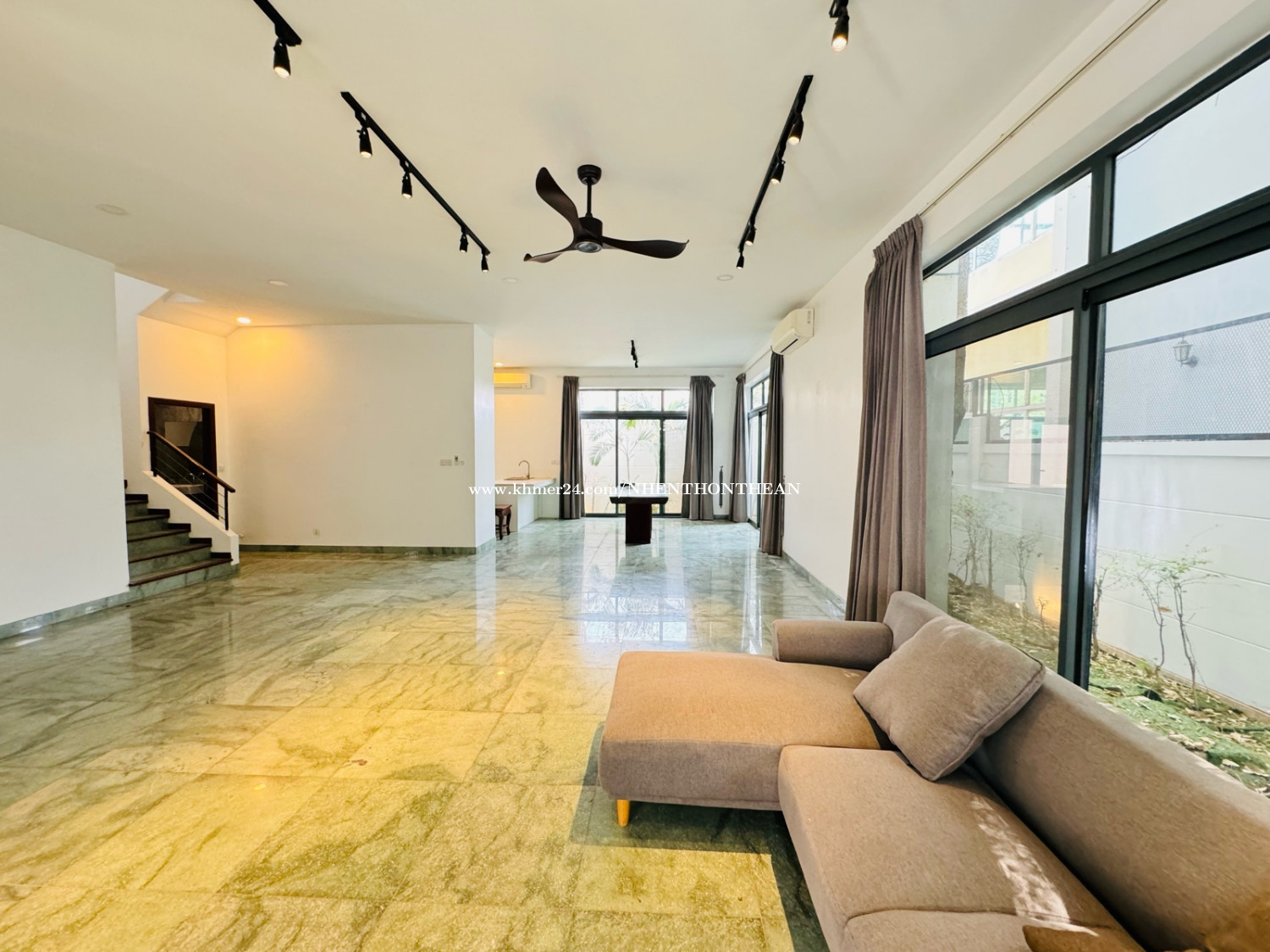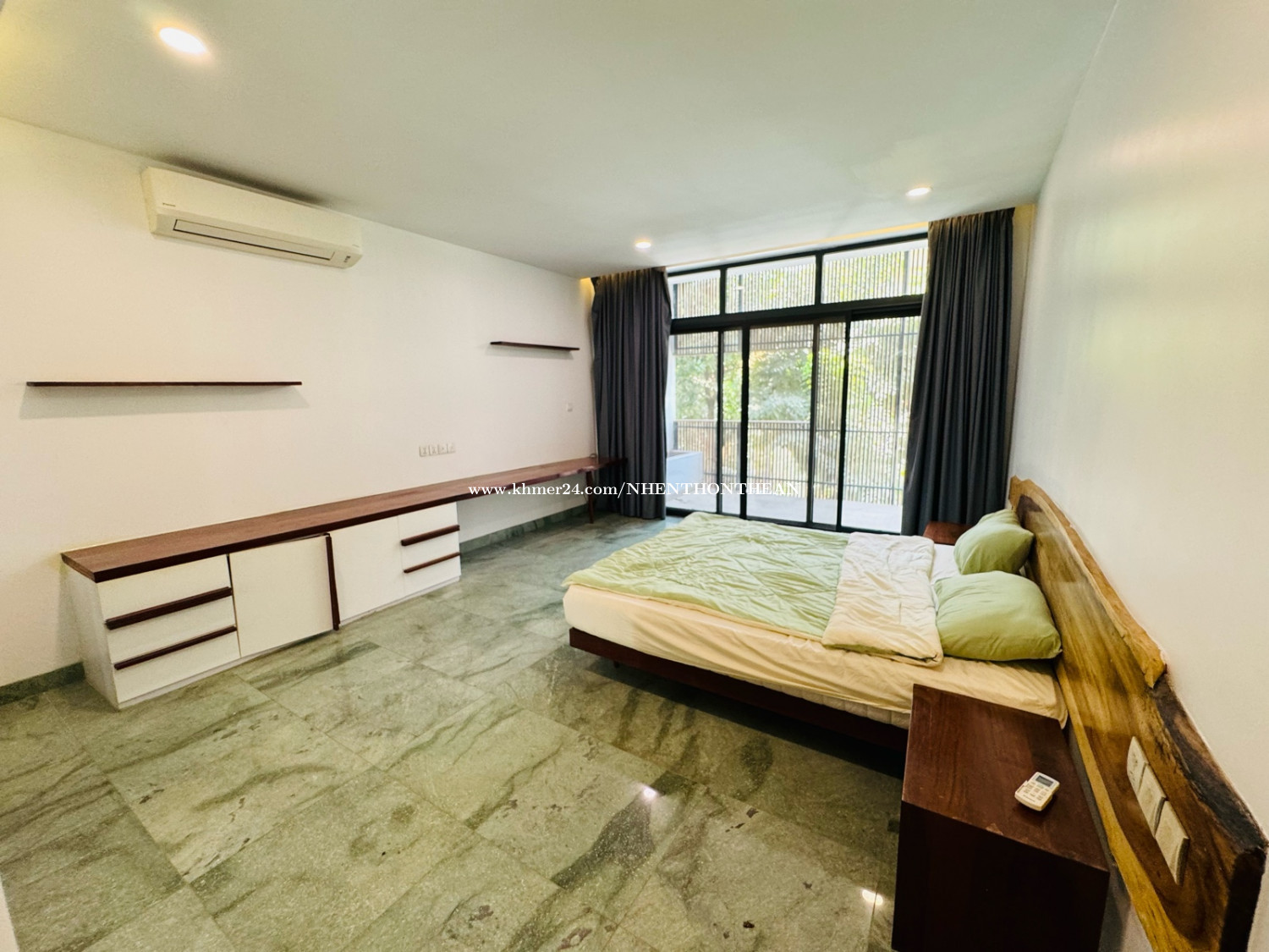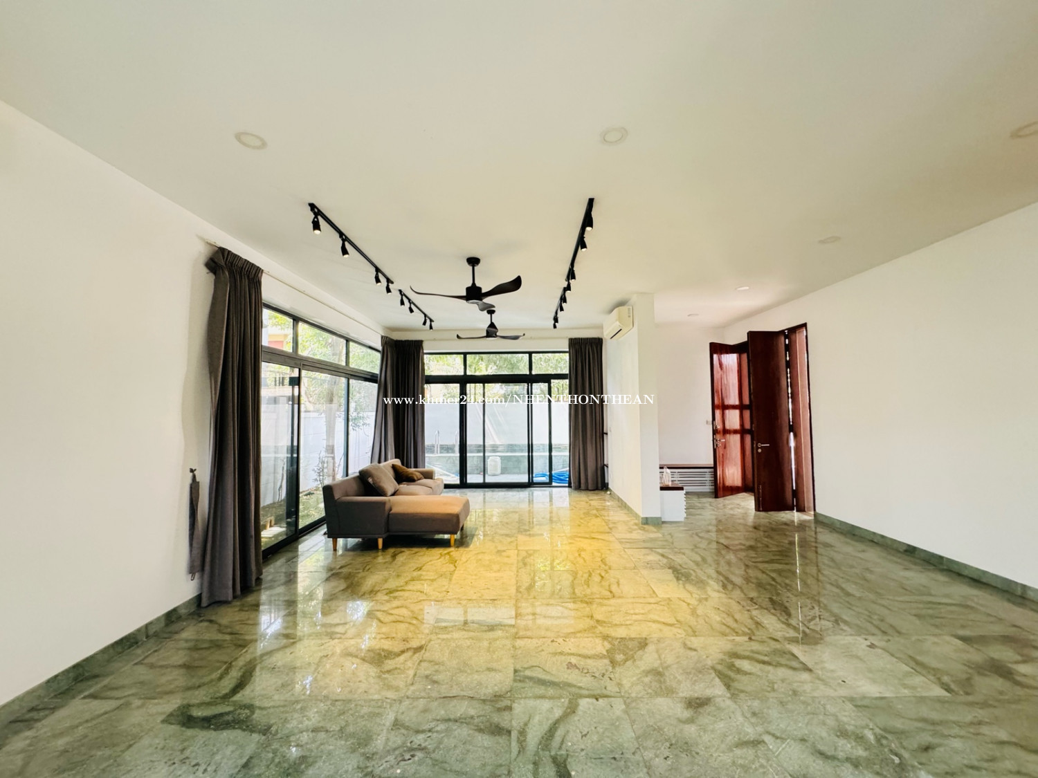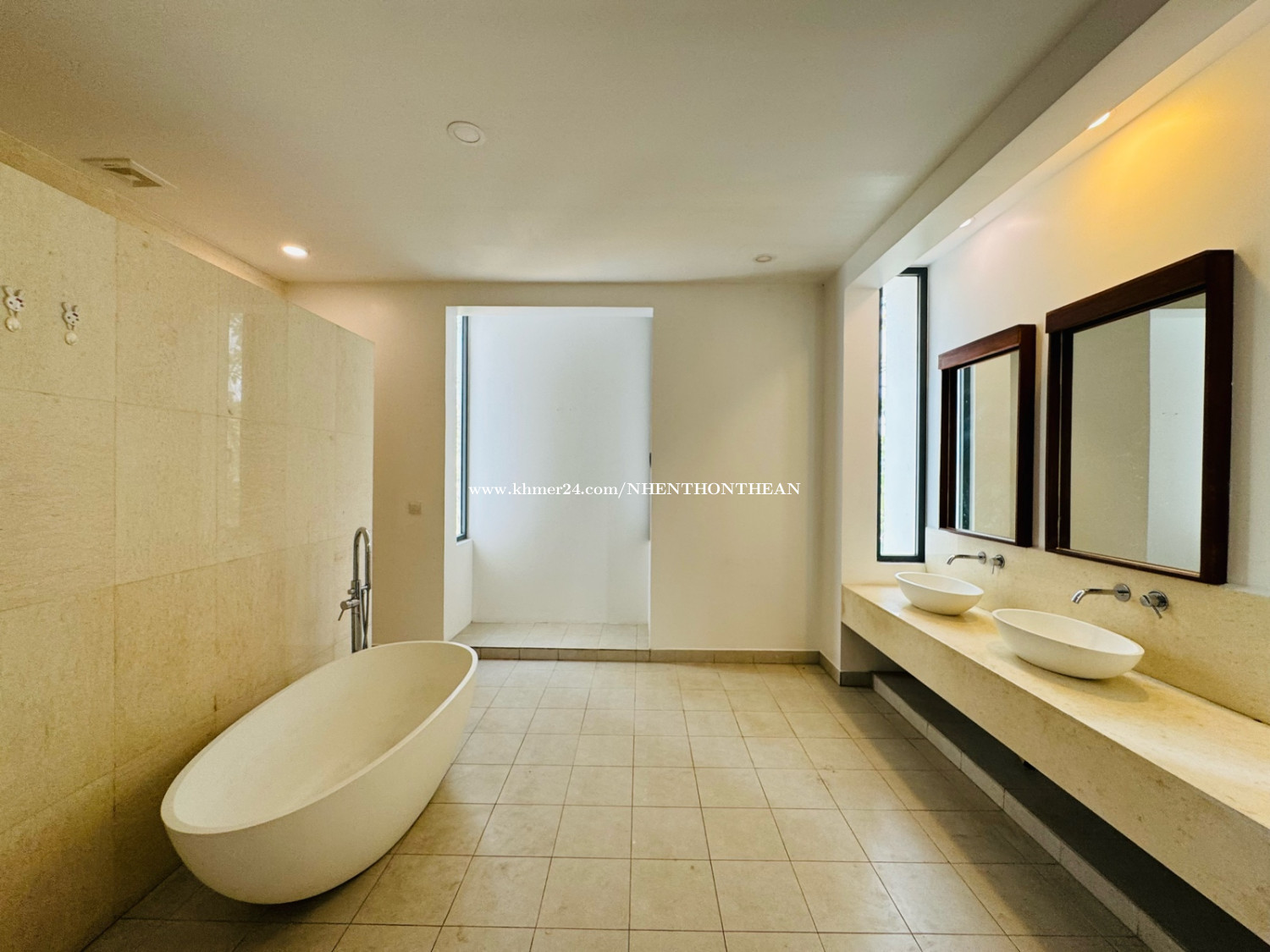 Compound Villa 5 Bedrooms For Rent in Tonle Bassac Area With Swimming. Price: $5000 per month Bedroom :05 plus 2 maid room Bathroom :06 Furniture: fully furnished Parking around 1 car up It is very good for living and office safe area no flooding.