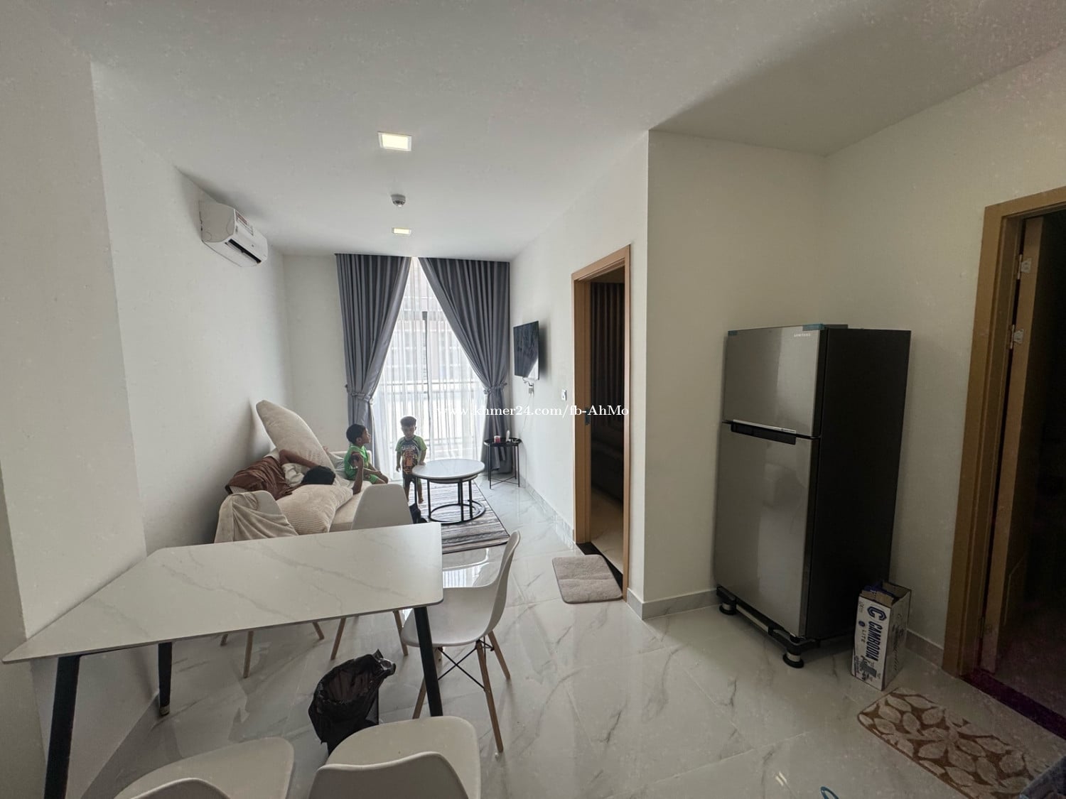 បន្ទប់ស្អាត មានរបស់ប្រើនៅក្នុងបន្ទប់ស្រាប់ បន្ទប់នៅជាន់ទី7 ទល់មុខផ្សារ ទីតាំងនៅcondo ពិភពថ្មីសែនសុខ