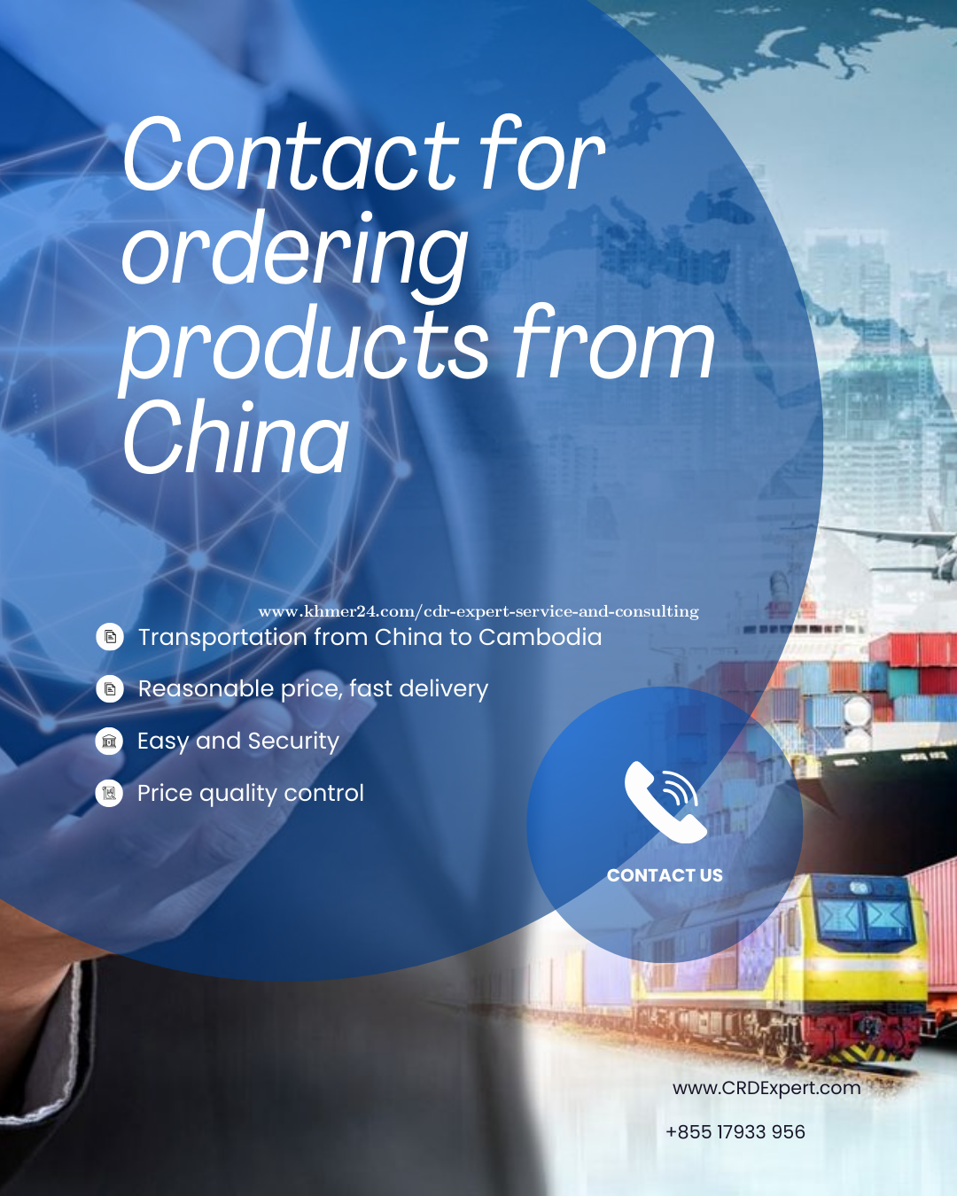 តើលោកអ្នកចង់កម្មង់ទំនិញពីចិនមែនទេ? លោកអ្នកគ្រាន់តែស្វែងរក និងទិញទំនិញគ្រប់ប្រភេទពីប្រទេសចិន—គ្រាន់តែផ្ញើរូប ឬ Link មកជួយពិនិត្យតម្លៃឲ្យភ្លាមៗ ស្វែងរក ទិញ កម្មង់ ដឹក និងដល់ដៃអតិថិជនបានយ៉ាងសុវត្ថិភាព។ ------------------------------------------------ Do you Want to order goods from China? You can simply search and buy all kinds of goods from China—just send us a picture or link to help us check the price immediately, search, buy, order, deliver and reach customers safely. ✅ ជួយបញ្ជាទិញទំនិញគ្រប់ប្រភេទ ពីរោងចក្រចិន ✅ ដឹកជញ្ជូនទំនិញពីចិនមកខ្មែរ លឿន រហ័ស។ ✅ ធានាសុវត្តិភាព និងគុណភាពទំនិញ 📞 ទំនាក់ទំនងឥឡូវនេះ អាចសាកសួរព័ត៌មានបន្ថែមបាន! ទូរស័ព្ទលេខ (Phone): +855967570xxxClick To Call (Telegram) 📲Join Telegram: t.me/CDRexperts អាសយដ្ឋាន : គោកឃ្លាង ខណ្ឌសែនសុខ រាជធានីភ្នំពេញ