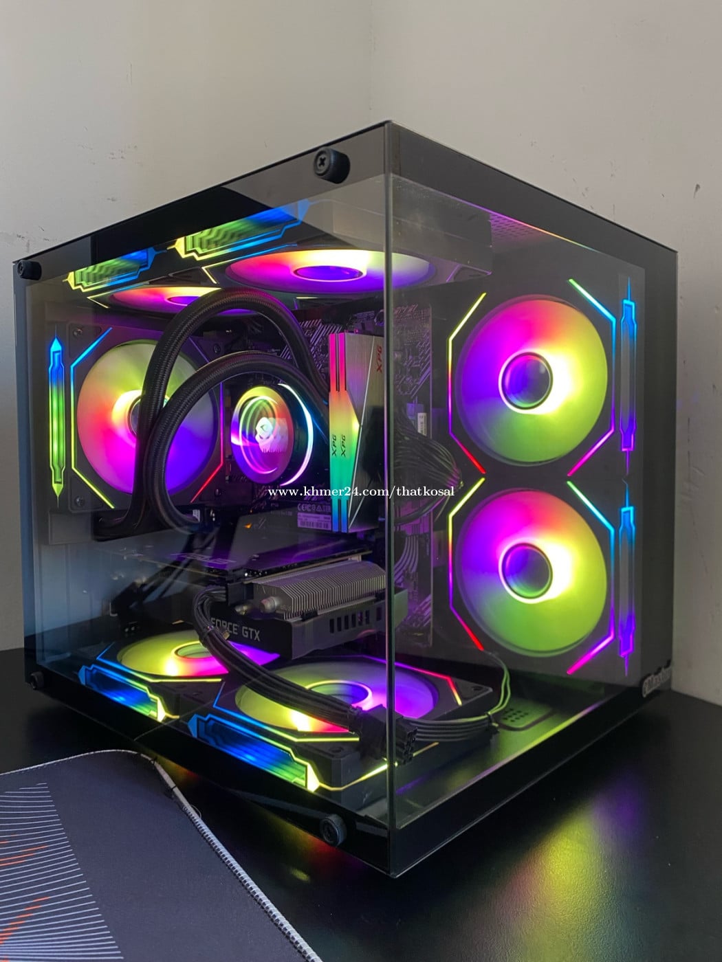 CPU : Intel Core i5-10400F (3.00GHz) RAM : XPG D50 DDR4 16G (3200MHz) MB : Asus Prime H510M-E (11th Gen) SSD : M.2 SP 256G (Window11Pro) HDD : WD BLUE 1000G (1T SATA) PSU : Aigo 500W (Original Full) CASE : eMaster M-ATX (កញ្ចាក់មុខចំហៀង) COOLER : Liquid GAMEKM UFO (ARGB Sync) FAN CASE : MetalFish 4Pro (ARGB Sync X7) GPU : Asus Strix GTX 1060 6G (GDDR5) Telegram : https://t.me/thatkosal Tel : 011471xxxClick To Call តម្លៃចរចាបាន ធានាមួយខែ មានទទួល Build/Upgrade និងជួសជុល PC គ្រប់ប្រភេទ