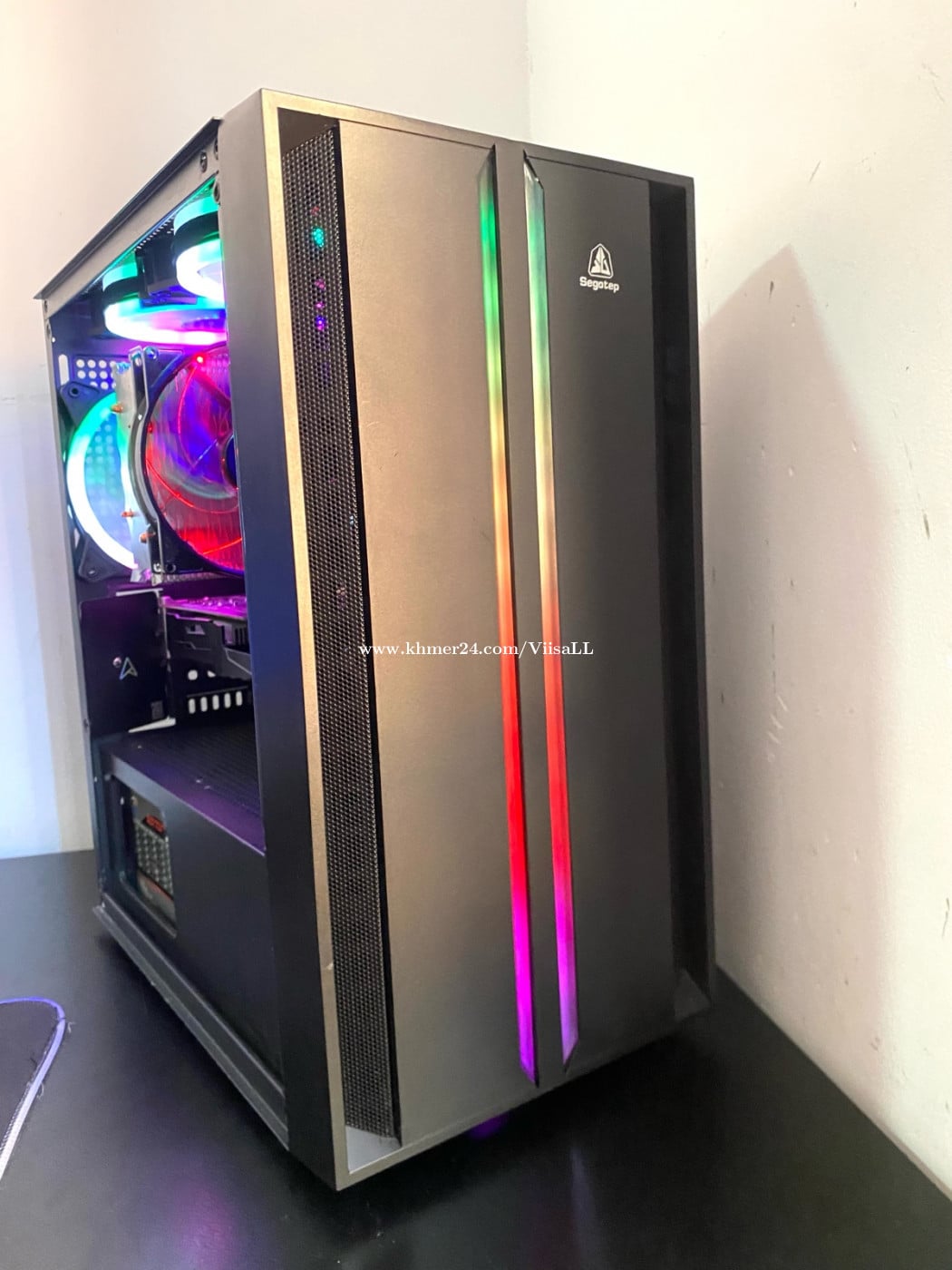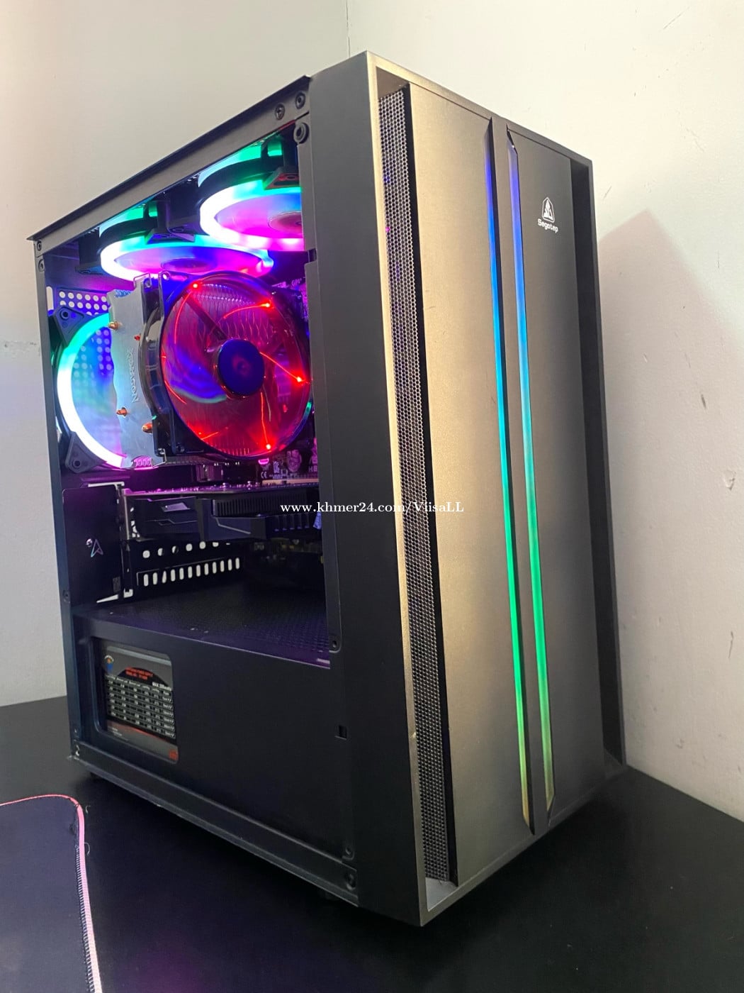 CPU : Intel Core i5-4590 (3.30GHz) RAM : SK Hynix DDR3 8G (1600MHz) MB : Asus H81M-D (4th Generation) SSD : Colorful 128G (Window10Pro) HDD : SEAGATE 500G (Drive D SATA) PSU : POWERSUN 300W (Original Full) CASE : SEGOTEP M-ATX RGB (កញ្ចក់ចំហៀង) COOLER : RED DRAGON 120 (RGB RED) FAN CASE : H.I (RGB Rainbow X3) GPU : MEXSUN GT 1030 2G (GDDR5)
