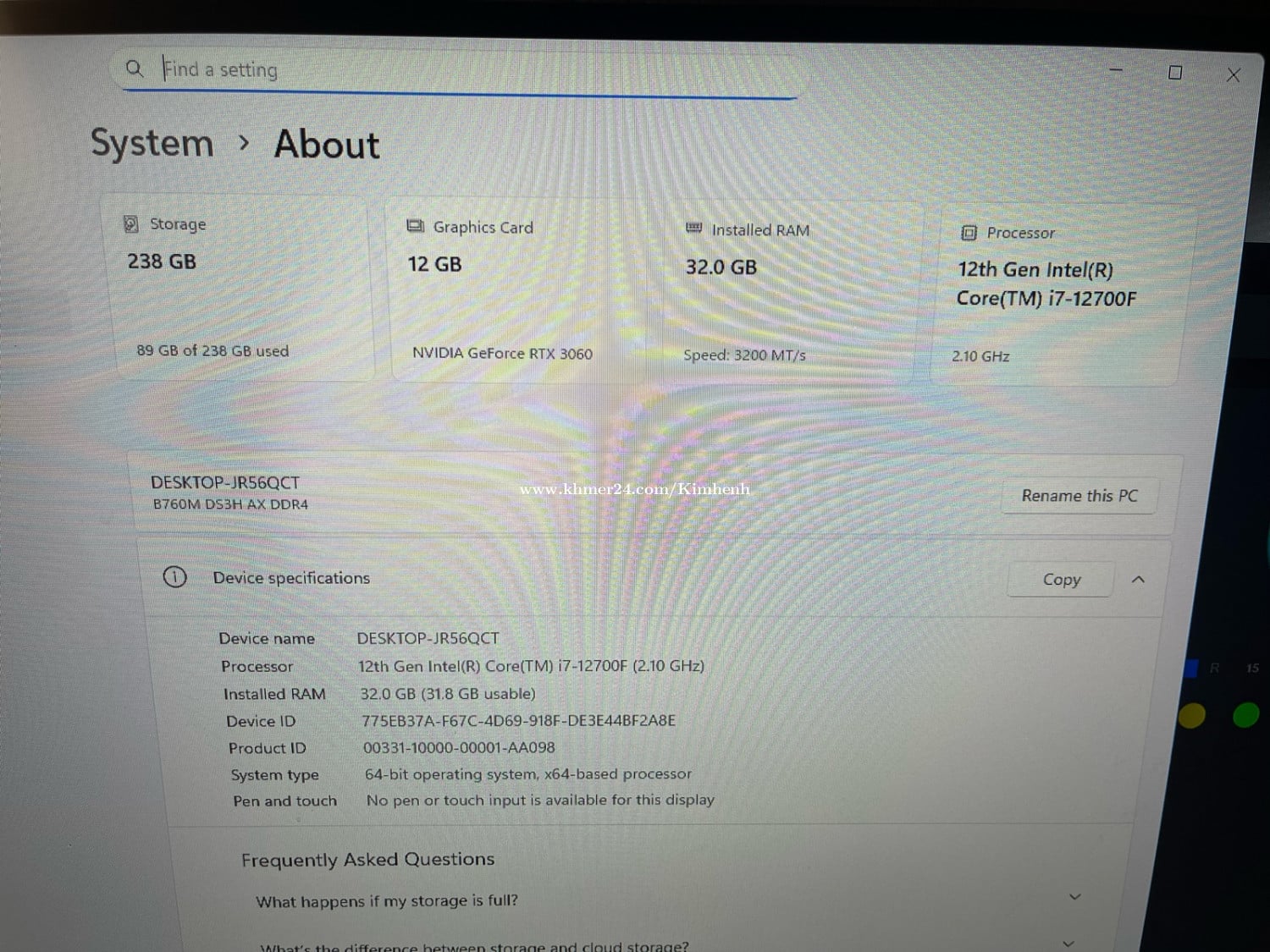 Sell Gaming PC Spec CPU i7-12700f CPU Cooling LovingCool LCD Temperature M.2 Gen3x4 256g Motherboard Gigabyte B760 DS3H AX DDR4 Wifi Ram XPG Spectrix D35 32g 3200 16gx2 VGA RTX 3060 MSI Ventus 12g Power Aigo GP 650w Full Fan Control ARGB Gigabyte Control Center 750$ Desktop only 0966484xxxClick To Call