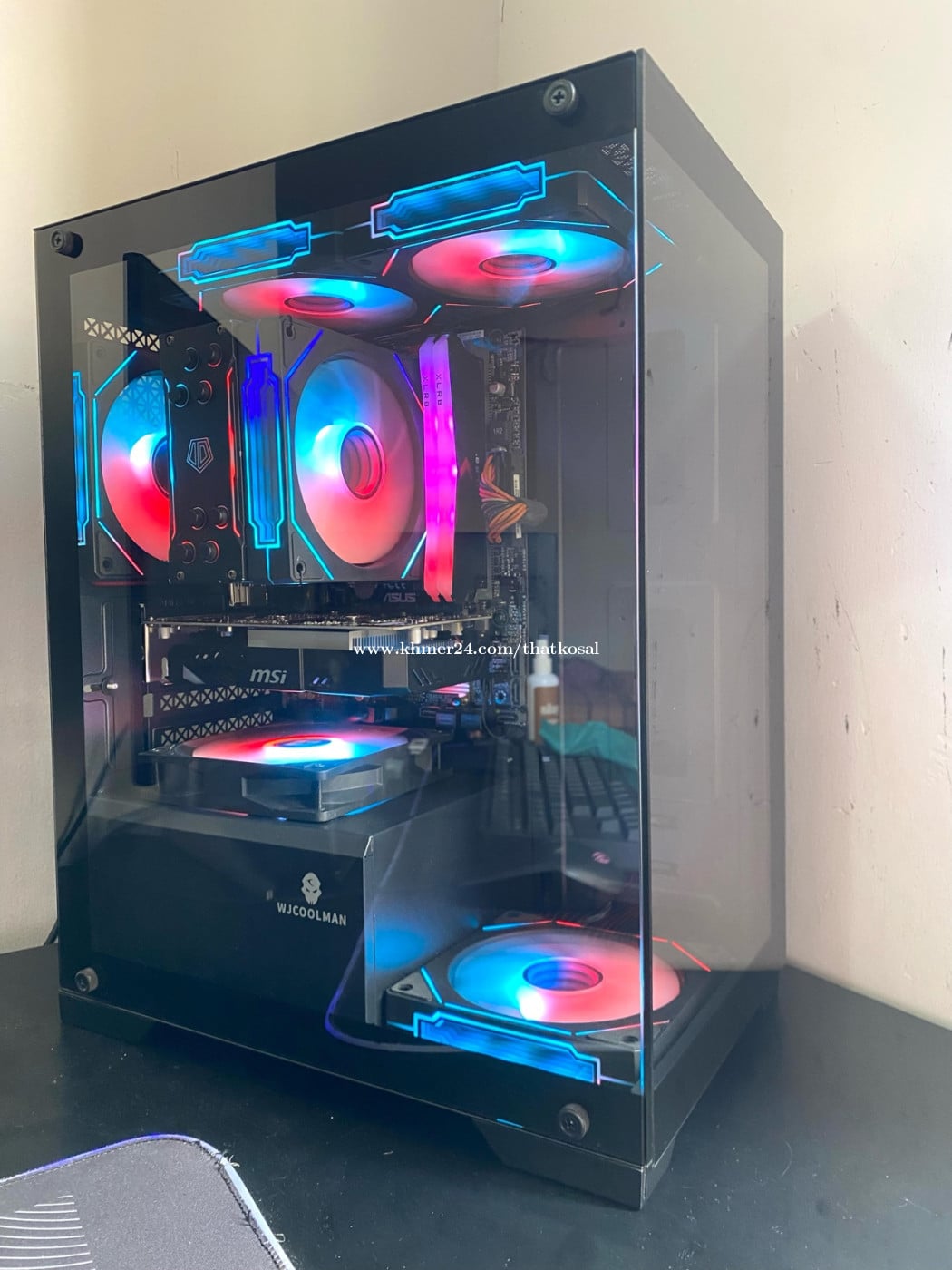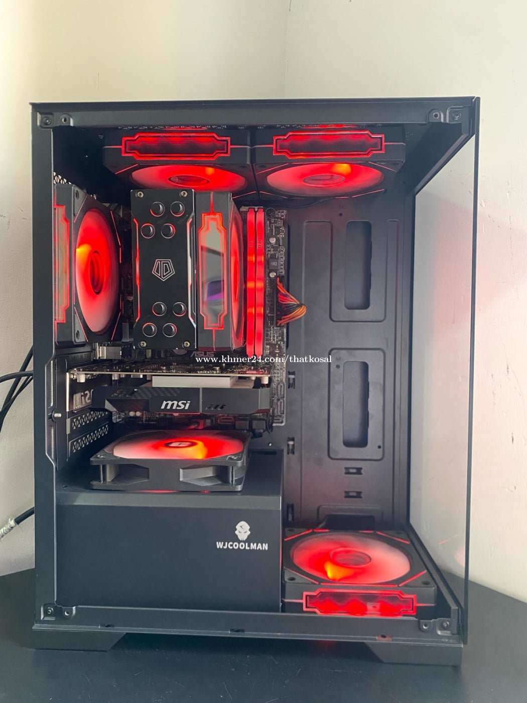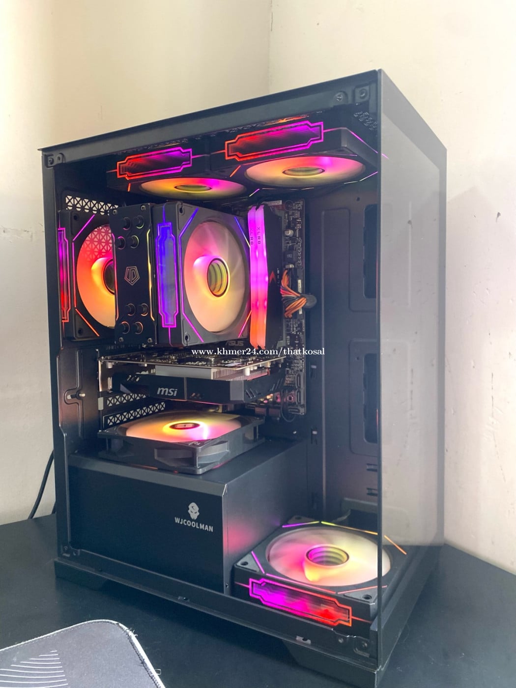 CPU : Intel Core i7-6700 (3.40GHz) RAM : XLRB DDR4 16G (3200MHz) MB : Asus B150M-K (6/7th Gen) SSD : GIDSWILL 256G (Window10Pro) HDD : HGST 1000G (1T SATA) PSU : CoolerMaster 450W (80Plus) CASE : WJCoolMoon M-ATX (កញ្ចាក់មុខចំហៀង) COOLER : ID-Cooling SE-224-XTS (ARGB Sync) FAN CASE : MetalFish 4Pro (ARGB Sync X4) GPU : msi Aero GTX 1050Ti 4G (GDDR5) Telegram : https://t.me/thatkosal Tel : 0114711xxxClick To Call តម្លៃចរចាបាន ធានាមួយខែ មានទទួល Build/Upgrade និងជួសជុល PC គ្រប់ប្រភេទ