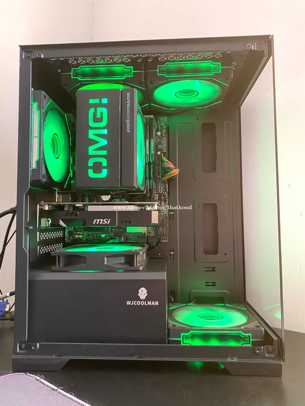 CPU : Intel Core i7-6700 (3.40GHz) RAM : HyperX DDR4 16G (2400MHz) MB : Asus B150M-K (6/7th Gen) SSD : Hyundai 256G (Window10Pro) HDD : TOSHIBA 1000G (1T SATA) PSU : CoolerMaster 450W (80Plus) CASE : WJCoolMoon M-ATX (កញ្ចាក់មុខចំហៀង) COOLER : iForGame OMG-600 (ARGB Sync) FAN CASE : MetalFish 4Pro (ARGB Sync X5) GPU : msi Aero GTX 1050Ti 4G (GDDR5) Telegram : https://t.me/thatkosal Tel : 0114711xxxClick To Call តម្លៃចរចាបាន ធានាមួយខែ មានទទួល Build/Upgrade និងជួសជុល PC គ្រប់ប្រភេទ