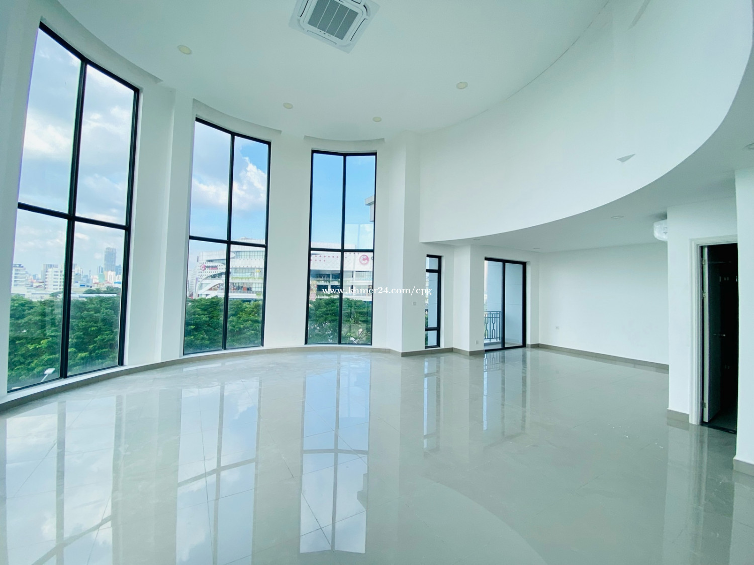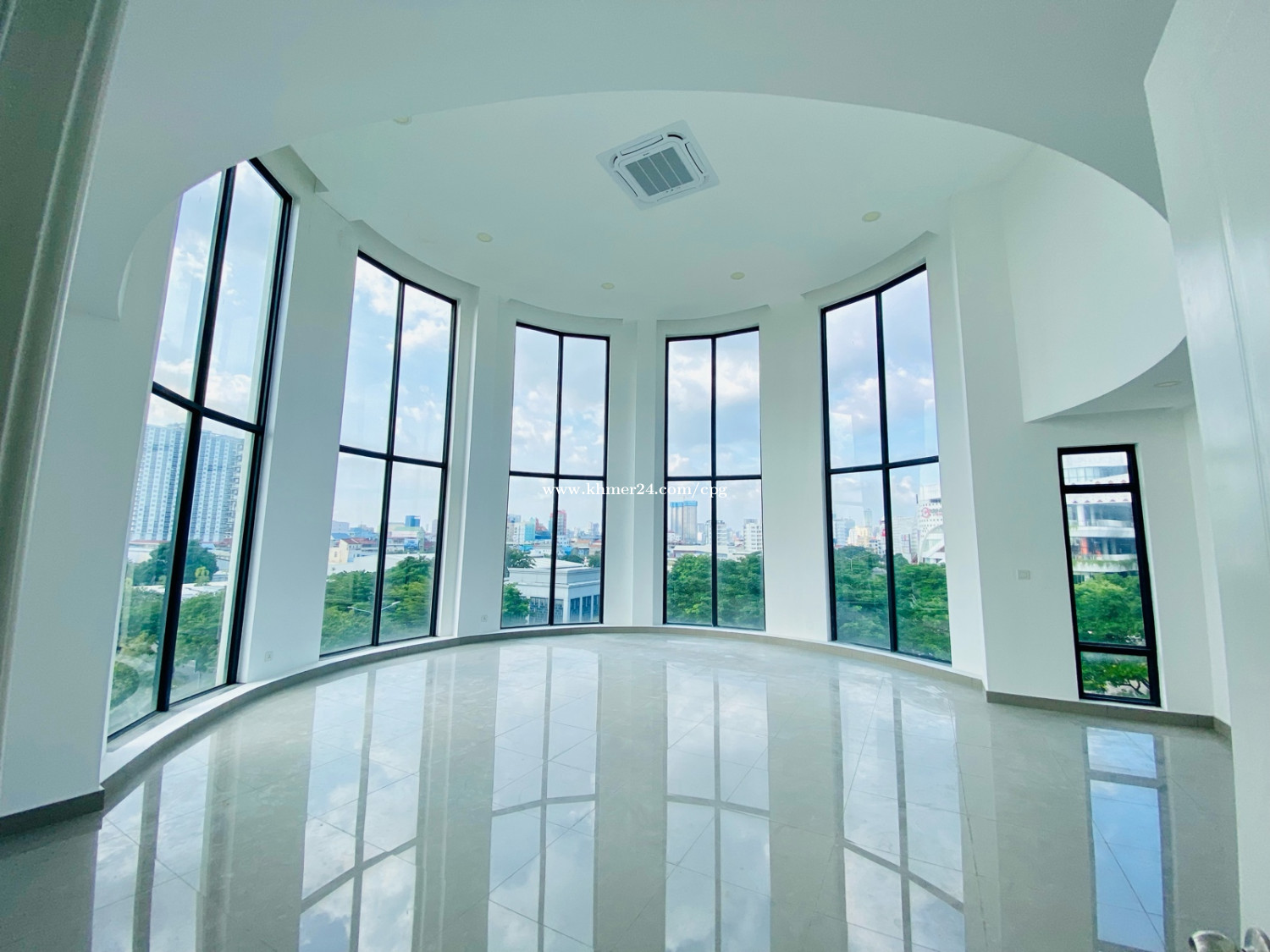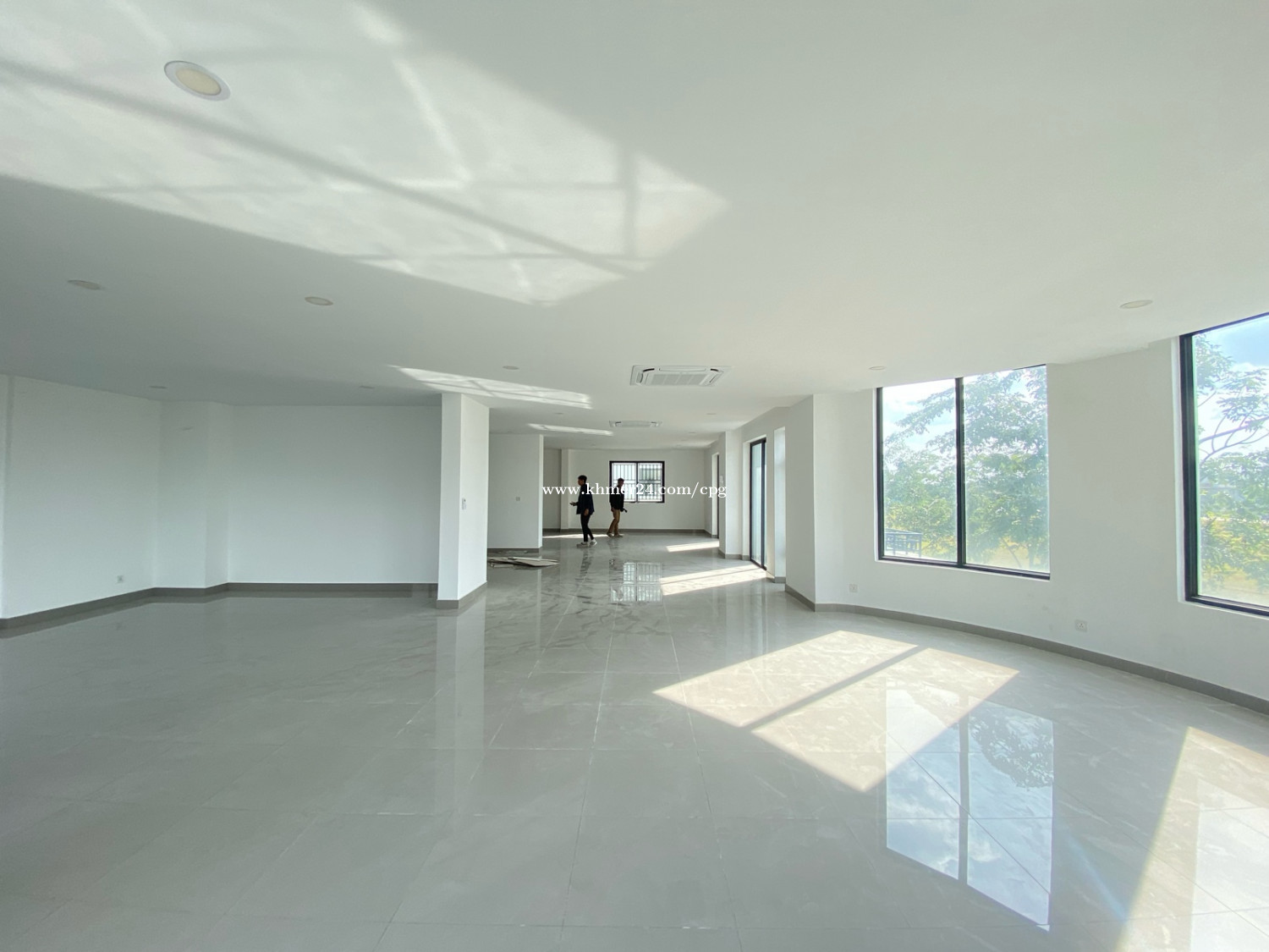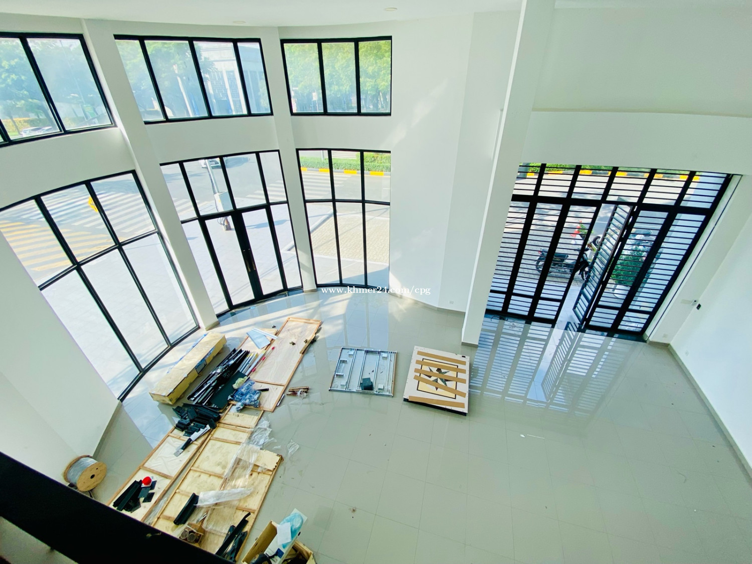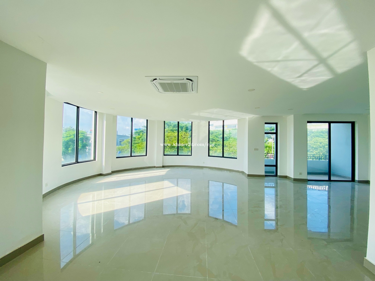 Nice Commercial Building Showroom For Rent Near St60M , Sangkat Chak Angrae Land: 11m x 26m Building: 11m x 17m 3 Floor Has: Elevator Free installation Electricity: 100A / 3Pha A/C: Central A/c 3HP=3, & 5HP=3, Wall A/C= 4 totally 12 a/c Good For Bank, Office, Showroom,.etc