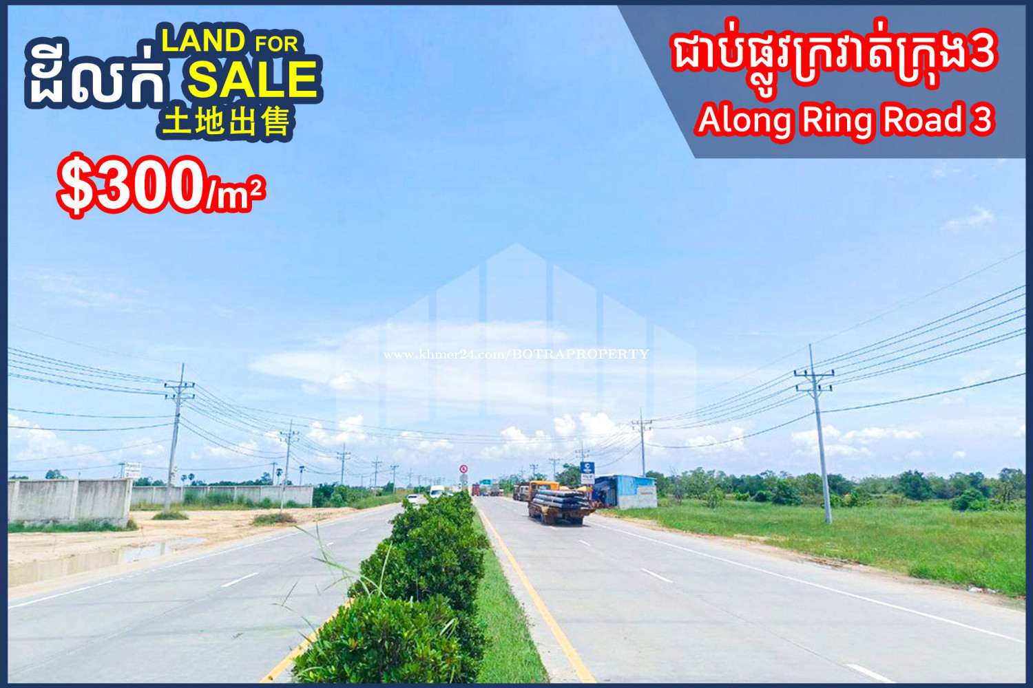 ๐ฃ Corner Land for Sale along Ring Road 3 corner of Road 50m, Tien Commune #SN0153 โข Land Size: 1,892m2 (Frontage: 59m) โข Price: $300/m2 โข Hard title (L-Map) โโโโโโโโโ Contact us now ๐ 012610xxxClick To Call (Cellcard) ๐ 010610xxxClick To Call (Smart) โถ๏ธ t.me/BotraRealEstate (Chat)