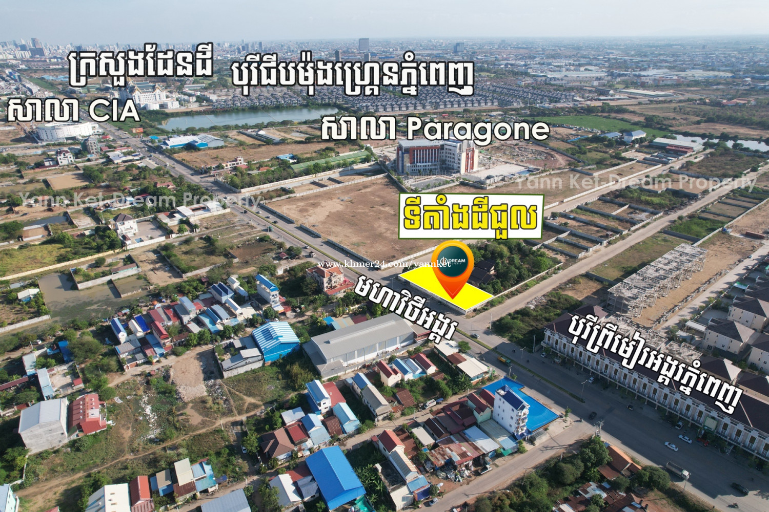 The Corner Road Land for Rent on Main Road Angkor Blvd Near Grand Phnom Penh - Price 2,000/month negotiable - Land size 60mx25m - Have three road front road size 40m and side road is 18m and 18m -Location: on Angkor Blvd Sangkat Svaypak Khan Ruseikeo Phnom Penh mear Borey Premier Angkor Phnom Penh Paragon and CiA international School. Contact for more info Telegram https://t.me/ket_611 π²0968473xxxClick To Call / 092573xxxClick To Call