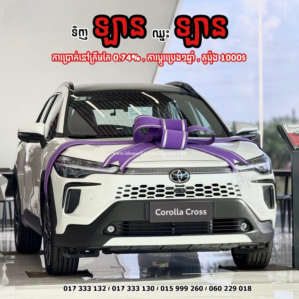 Toyota Corolla Cross ជារថយន្តដែល មានរូបរាង ស្អាត ទំនើប ហើយសន្សំសំចៃ តម្លៃ 47,900$ សម្រាប់ប្រម៉ូសិននៅក្នុងខែវិច្ឆិកានេះមានដូចជា 🔹ទទួលបានសន្លឹកឆ្នោតចាប់ Toyota Raize 2026 🔹សម្រាប់ការបង់រំលស់ការប្រាក់នៅត្រឹម 0.74% 🔹ទទួលបានគូប៉ុង 1000$ 🔹ការប្ដូរប្រេង១ឆ្នាំពេញ ♻️សេវាកម្មយករថយន្តចាស់ប្តូរយករថយន្តថ្មី💯 »» ការផ្តល់ជូនបន្ថែម 1️⃣ 𝐅𝐫𝐞𝐞 កំរាលជើង1ឈុត 2️⃣ 𝐅𝐫𝐞𝐞 ផ្លាកលេខភ្នំពេញ + ឈៀក4ឆ្នាំ (អត្តសញ្ញាណប័ណ្ណភ្នំពេញ) 3️⃣ ការធានាចេញពីរោងចក្រ 3ឆ្នាំរឺ10ម៉ឺនគីឡូ 4️⃣ 𝐅𝐫𝐞𝐞 ឆែកបច្ចេកទេសសម្រាប់ការយកទៅប្រើប្រាស់ ១ខែ ឬ១ពាន់គីឡូម៉ែត្រដំបូង សម្រាប់ព័ត៌មានលម្អិត សូមទំនាក់ទំនងផ្នែកលក់រថយន្ត៖ ☎️017333xxxClick To Call ☎️017333xxxClick To Call ☎️015999xxxClick To Call ☎️060229xxxClick To Call 👉 𝐓𝐞𝐥𝐞𝐠𝐫𝐚𝐦 𝐂𝐡𝐚𝐧𝐧𝐞𝐥:https://t.me/toyota_aws 👉 KH24 : https://www.khmer24.com/Toyota-VIP 👉 𝗪𝗲𝗯𝘀𝗶𝘁𝗲 : https://www.toyota.com.kh/en.html