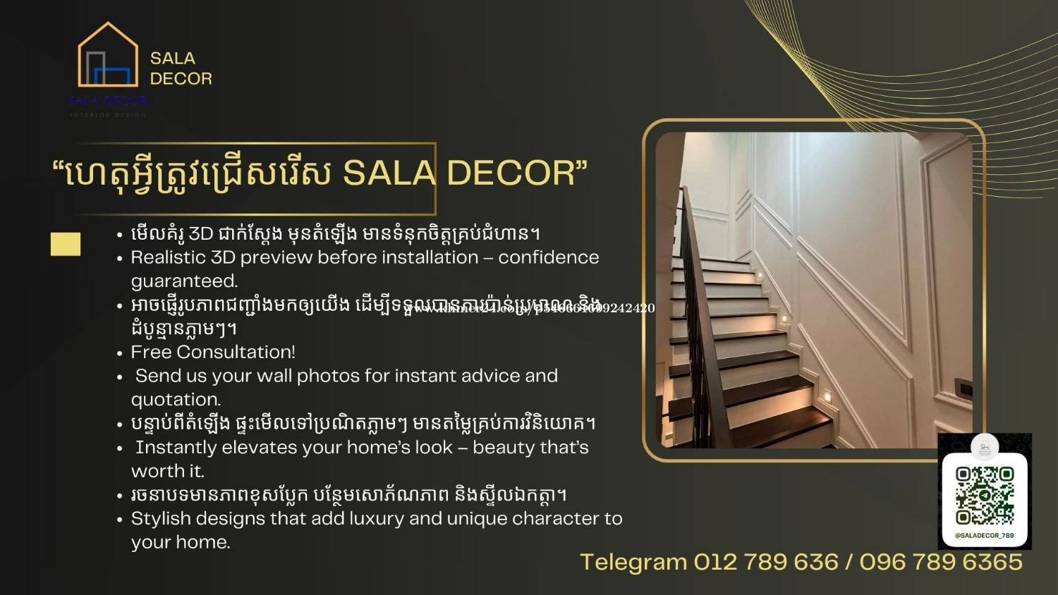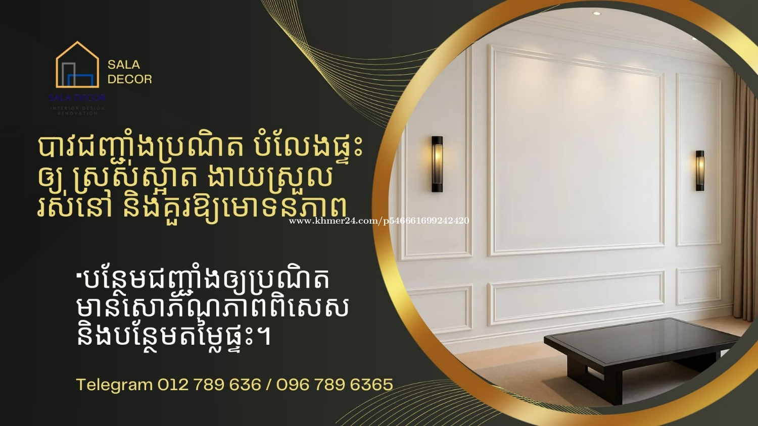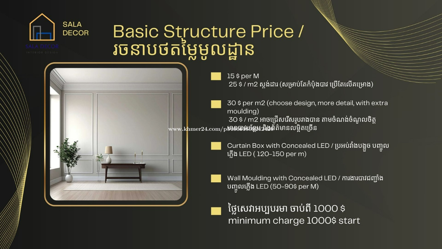 Khmer (KH) Title: គែមជញ្ជាំង និងប្រអប់របារទាំង LED – ដំឡើងលឿន តម្លៃសមរម្យ Description: ធ្វើឱ្យផ្ទះអ្នកទំនើសម័យជាមួយគែមជញ្ជាំង និងប្រអប់របារទាំង LED។ ✔ ដំឡើងរហ័ស មិនចាំបាច់រុះរើជញ្ជាំង ✔ តម្លៃសមរម្យ ចាប់ពី $1,000 ✔ ក្រុមការងារអាជីព មានការធានាគុណភាព ✔ សាកសមសម្រាប់ផ្ទះថ្មី និងផ្ទះចាស់ ✔ អាចដំឡើងលើជញ្ជាំងបេតុងចាស់បាន – សន្សំថវិកា និងពេលវេលា 🎉 ប្រូម៉ូសិនពិសេស: សម្រាប់ការងារលើស $3,000 ទទួលបាន សេវាកម្មលាបថ្នាំពណ៌ឥតគិតថ្លៃ (រួមទាំងសម្ភារៈ និងកម្លាំងការងារ តម្លៃ $300–500) 📞 ទំនាក់ទំនង: Telegram / Phone: 0967896xxxClick To Call (Khmer) | 0975654xxxClick To Call (Eng) English (EN) Title: Crown Molding & LED Curtain Box – Fast & Affordable Installation Description: Upgrade your home with stylish crown molding and modern LED curtain boxes. ✔ Quick installation – no wall demolition needed ✔ Affordable price starting from $1,000 ✔ Professional team with quality guarantee ✔ Suitable for both new and old houses ✔ Can be installed directly on old concrete walls – save time and cost 🎉 Special Promotion: For projects over $3,000, get FREE Painting (materials + labor, value $300–500). 📞 Contact us: Telegram / Phone: 0967896xxxClick To Call (Khmer) | 0975654xxxClick To Call (Eng)