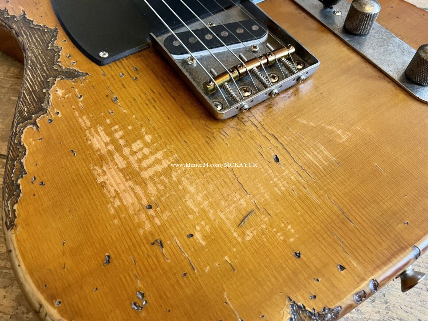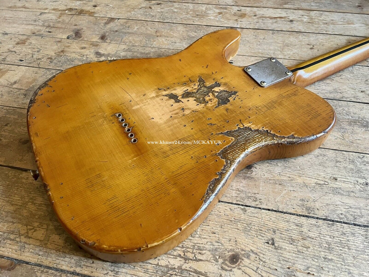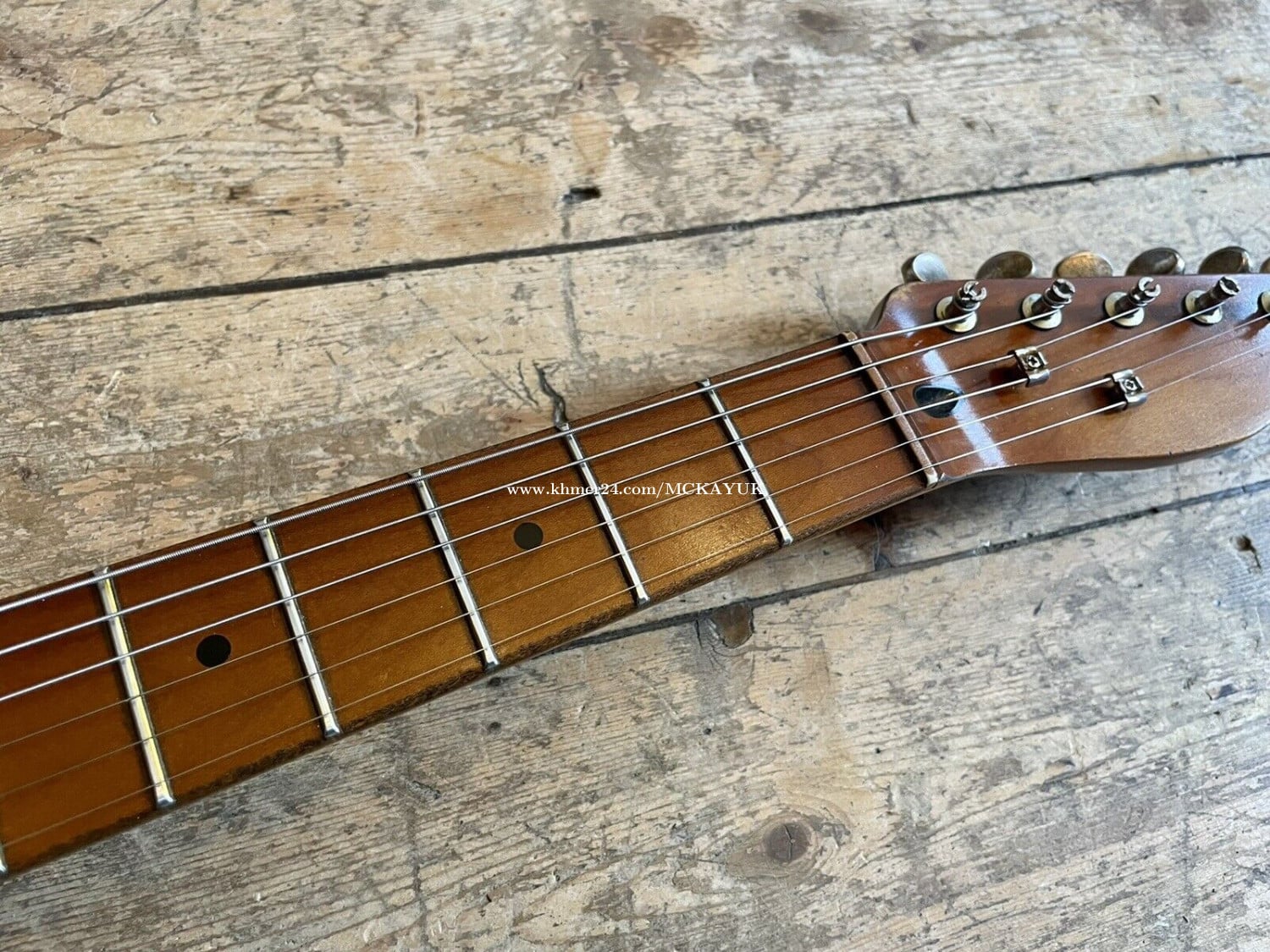 Body Type: Solid Body Color: Butterscotch Type: Right Handed Model: Electric Guitar Body: Ash Neck: Maple, Roasted Maple Neck Profile: C/D Frets: Rounded Edge Jumbo 9.5 Radius Controls: Volume & Tone Pick Up: Neck & Bridge Switch: 3 Tone Switch Tuners: Telecaster Vintage Performance Level: Professional Weight: 8.2 Lbs Finish: Deep Amber Nitro Professionally setup low action and Intonation - ready to play. Professional hand crafted Heavy Relic Guitar by a U.K. master builder. Not a series made Guitar but instead unique and one of a kind that anyone would be proud to own play and looks cool. Scammers do not waste my time with requests to correspond outside of khmer24. Genuine customers will have the ability to check the guitar at my address in Siem Reap where there is CCTV in both our interest OR pay via ABA Bank Transfer for free delivery. Whichever you choose there is no guarantee and no reason for return or refund accepted. My care of duty and responsibility ends when you receive the Guitar in person or it is handed over to the Courier who then assume responsibility for care and damage free delivery. Thank you for giving this your attention and agreeing to these conditions before purchase.