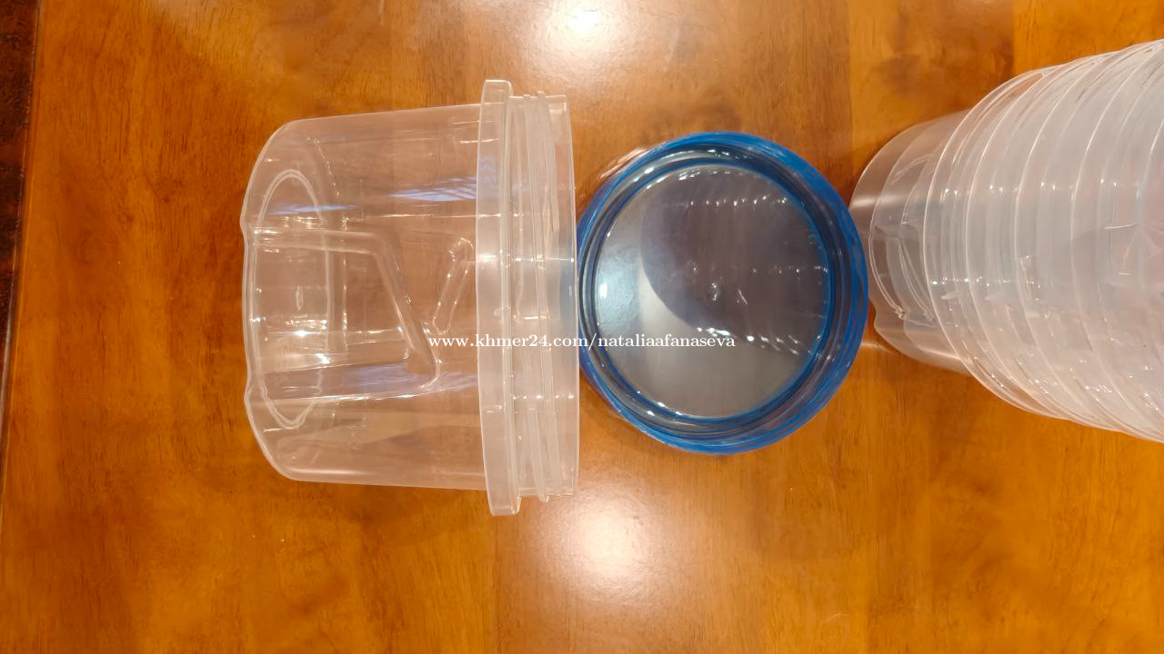 Cylindrical food storage/lunch boxes, microwaveable, reusable, high-quality transparent food-grade plastic, no odor. Volume: 500ML, Diameter: 11.5 mm Height: 7.7cm. Brand new in a factory wrap. $3 per 6 pack. Sihanoukville.