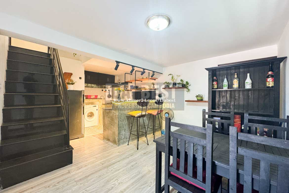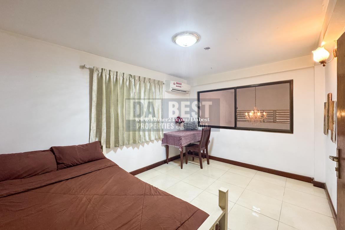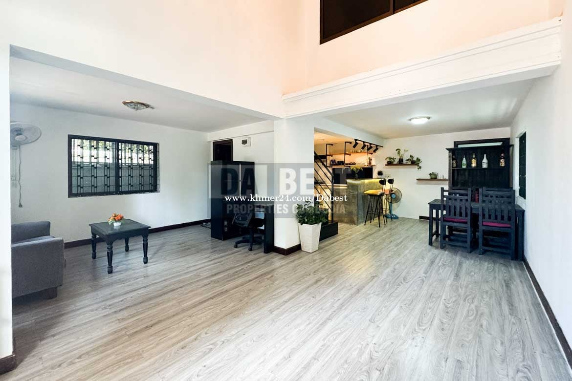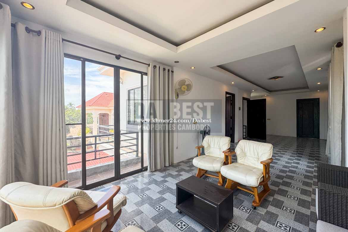 • Code: SRV119 • 3 Bedrooms • 4 Bathrooms with hot shower • Living area with Television and Sofa • Fully furnished • Kitchen, Washing machine, fridge, gas cooker • Parking and secured gate • Located in Sangkat Sla Kram
