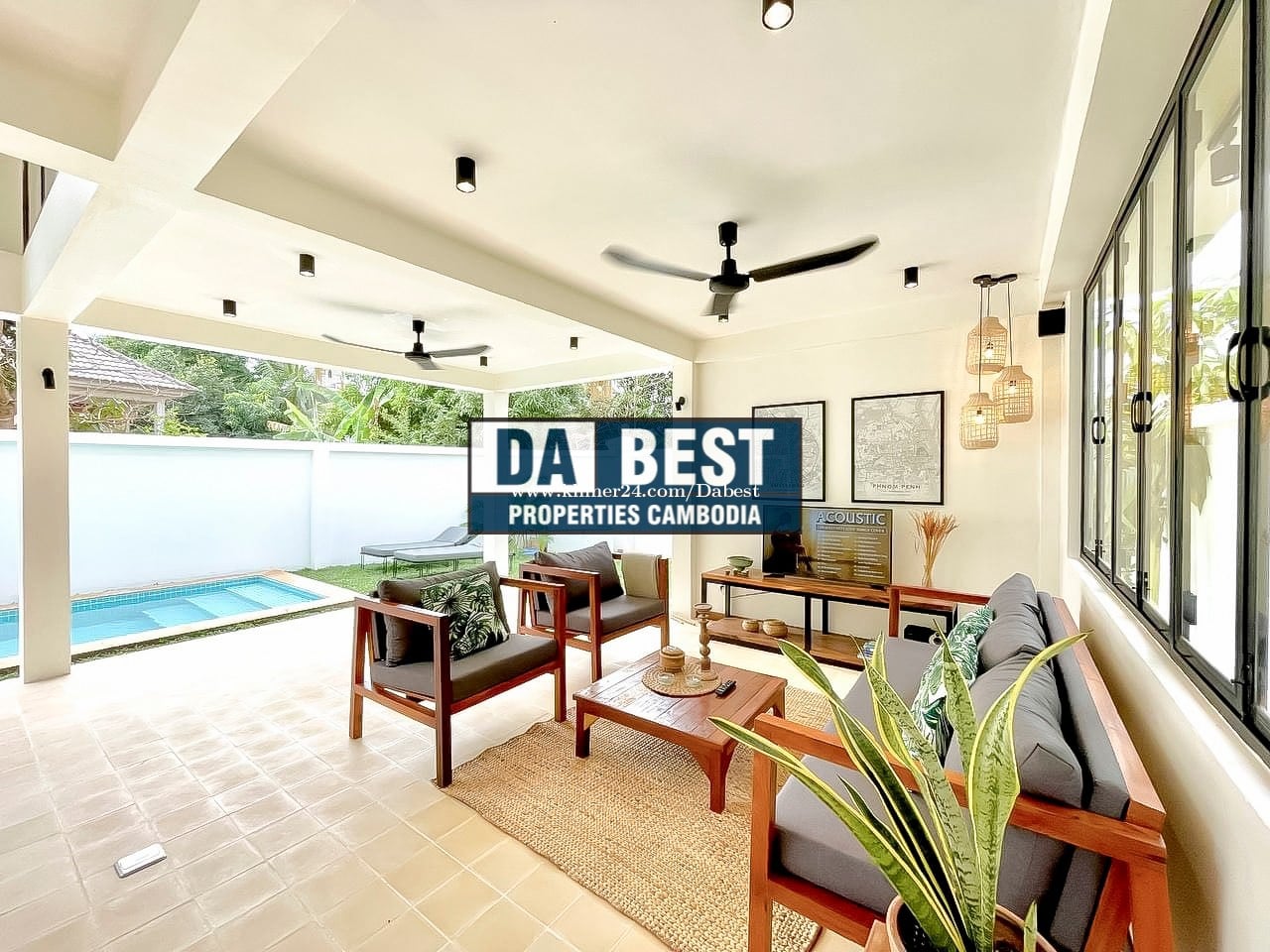 • Property ID: SRV957 • Contact DABEST: 061336xxxClick To Call (wechat, whatsapp, Line, Telegram) or mailto: inf*@dabest-properties.comClick To Sent Email MORE DETAILS: • 2 Bedrooms with air conditioner and 2 Bathrooms • Land Size: 10m x 20m • House Size: 6m x 12.2m • Fully-Furnished • Living Room and Kitchen • Swimming Pool and Garden • Balcony and Parking Space • Located in Sangkat Svay Dangkum