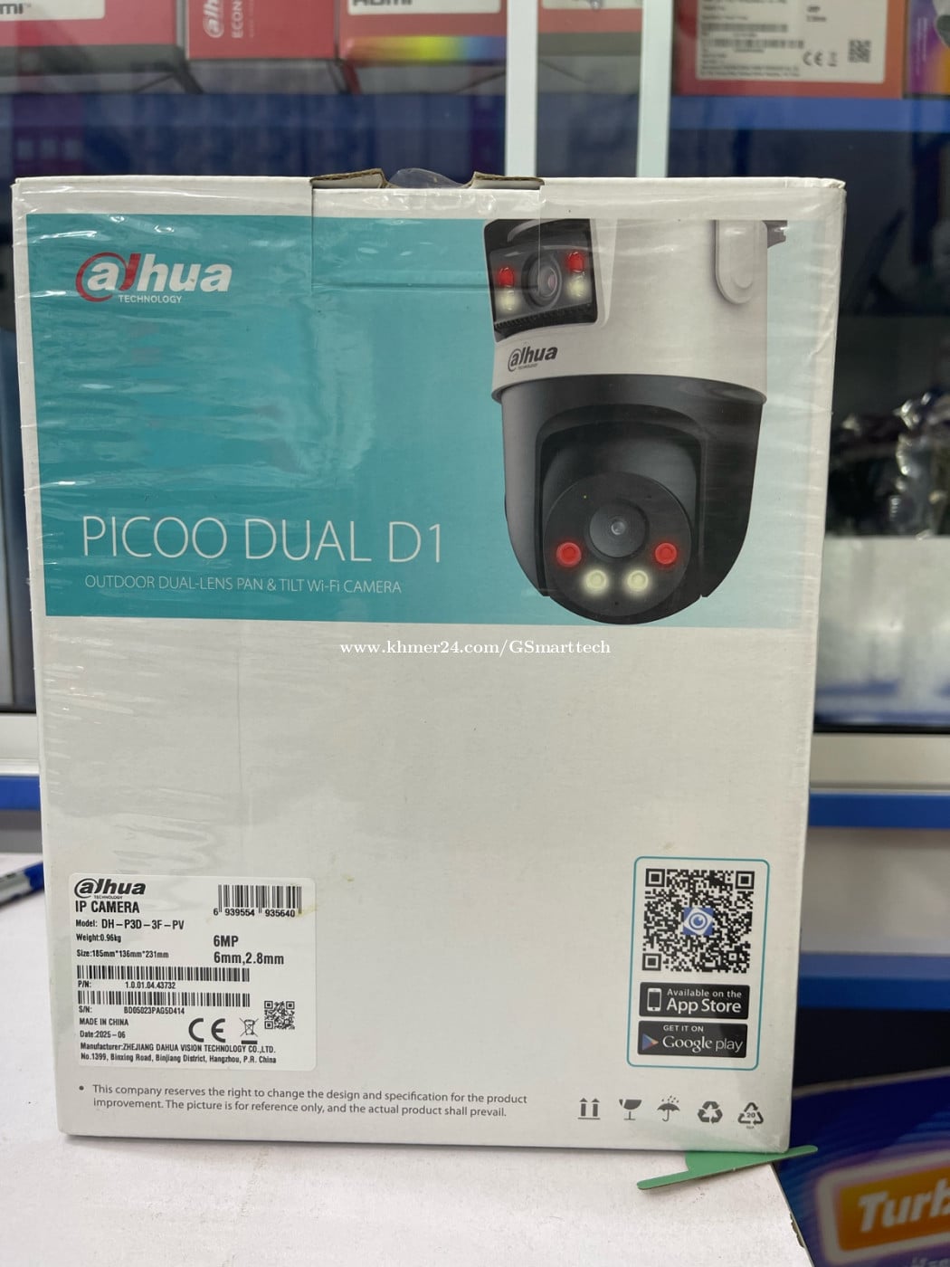 ផលិតផលកាមេរ៉ា Wi-Fi ភ្នែក២ របស់ Dahua Technology 1.DH-P3D-3F-PV (3MP+3MP) free memory 64GB 56$ 2.DH-P5D-5F-PV(5MP+5MP) free memory 64GB 60$ កាមេរ៉ាទាំង ២ម៉ូដែលនេះ មានលក្ខណះពិសេសដូចខាងក្រោម៖ - ភ្នែក ២ fixed lens និង PT lens - ស្តាប់សំលេងច្បាស់ល្អ និង អាចនិយាយឆ្លងឆ្លើយគ្នា - ផ្តល់សញ្ញាមកទូរស័ព្ទដៃភ្លាមៗពេលមានសកម្មភាព - រូបភាពច្បាស់ទាំងពេលថ្ងៃនិងពេលយប់ (Full Color Night Vision) - មានភ្លើង LED ជំនួយរូបភាពពេលយប់ - បញ្ចេញជាសឺរ៉ែនពេលមានសកម្មភាពឆ្លងកាត់ - អាចបញ្ជាបង្វិលបាន 360 ដឺក្រេ / លើក្រោមបាន 90 ដឺក្រេ - ងាករ៉េតាមសកម្មភាពមនុស្ស - ល្បឿនបញ្ជារ បានលឿនរហ័ស (App: DMSS) - កាត់ពន្លឺ បានល្អខ្លាំង (WDR / HDR) - ការពារជម្រាប់ទឹក IP66 - អាចចាប់សកម្មភាពដោយភាពវ៉ៃឆ្លាត (Smart Motion Detection) . AI human Detection: អាចចាប់សកម្មភាពមនុស្ស . AI Vehicle Detection: អាចចាប់សកម្មភាពយានយន្ត . Auto tracking: ការតាមដានដោយស្វ័យប្រវត្តិ