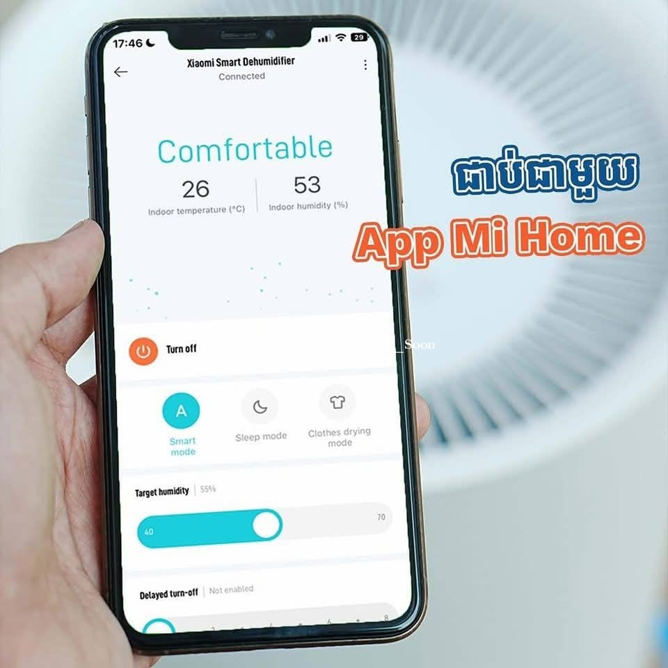 ប្រើសម្រាប់ បន្សុតសំណើម ក្នុងបន្ទប់ កុំឲ្យកើតផ្សិត កំចាត់បាក់តេរី ក្នុងខ្យល់ អាចសម្ងួតខោអាវបានទៀត ប្រើ ជាមួយ App បាន