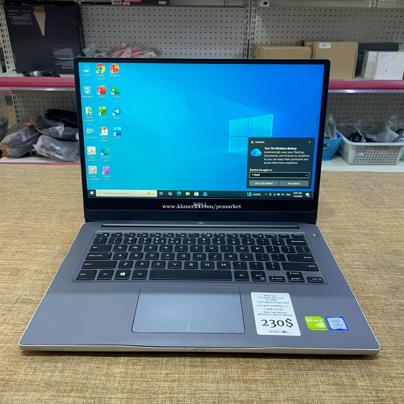 Ci5-8Gen Ram 8G Storage 256G Screen 14”FHD Free: Bag , mousepad, mouse, screen cleaner ធានា 3 ខែ