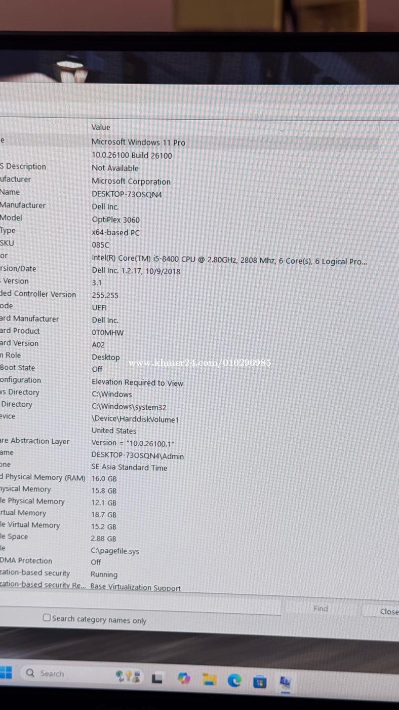 Desktop Office 1set: ➡️ Dell Optiplex 3060 (Used) ➡️CPU: Intel Core i5-8400 @2.80GHz (6Cores, 6Threads) ➡️ RAM: 16G DDR4 2666MHz (16G x1) ➡️ Storage: SSD 512G ➡️ Monitor: 24 inch 75Hz ➡️ Free: Mouse keyboard RGB & Mousepad ➡️ Price: 230$ ➡️ Warranty 30days ➡️ Tel: 010296xxxClick To Call Join group telegram below: https://t.me/+bAISWOCCOsw3ODJl --------------------------------- អាសយដ្ឋាន: ភូមិ 05 សង្កាត់ 04 ក្រុងព្រះសីហនុ, ខេត្តព្រះសីហនុ (ក្រោយសាលាហ៊ុនសែនមិត្តភាព ហៅសាលាអូរ2 ទល់មុខអាគារខុនដូរ LZ) Address: Village 05, Commune 04, Sihanoukville, Province. Link google map below: លីងផែនទី Google នៅខាងក្រោមនេះ: https://maps.app.goo.gl/BrZM4EoDXwDiVULT7?g_st=ic
