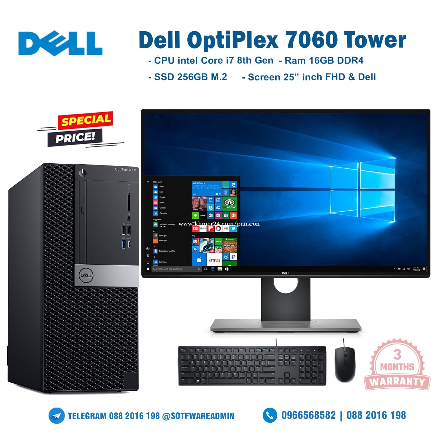 Dell OptiPlex 7060 Tower CPU intel Core i7 8th Gen Ram 8GB DDR4 SSD 256GB |Screen 25inch 2k Dell Ultra Sharp Monitor LED 25" Negro (U2518D) | 2560 X 1440 a 60 Hz | IPS| Price 1xx$ - Phone : 0966568xxxClick To Call | 0882016xxxClick To Call - Join Telegram Group : https://t.me/pscomputer98 - Chat Telegram : https://t.me/+855882016198