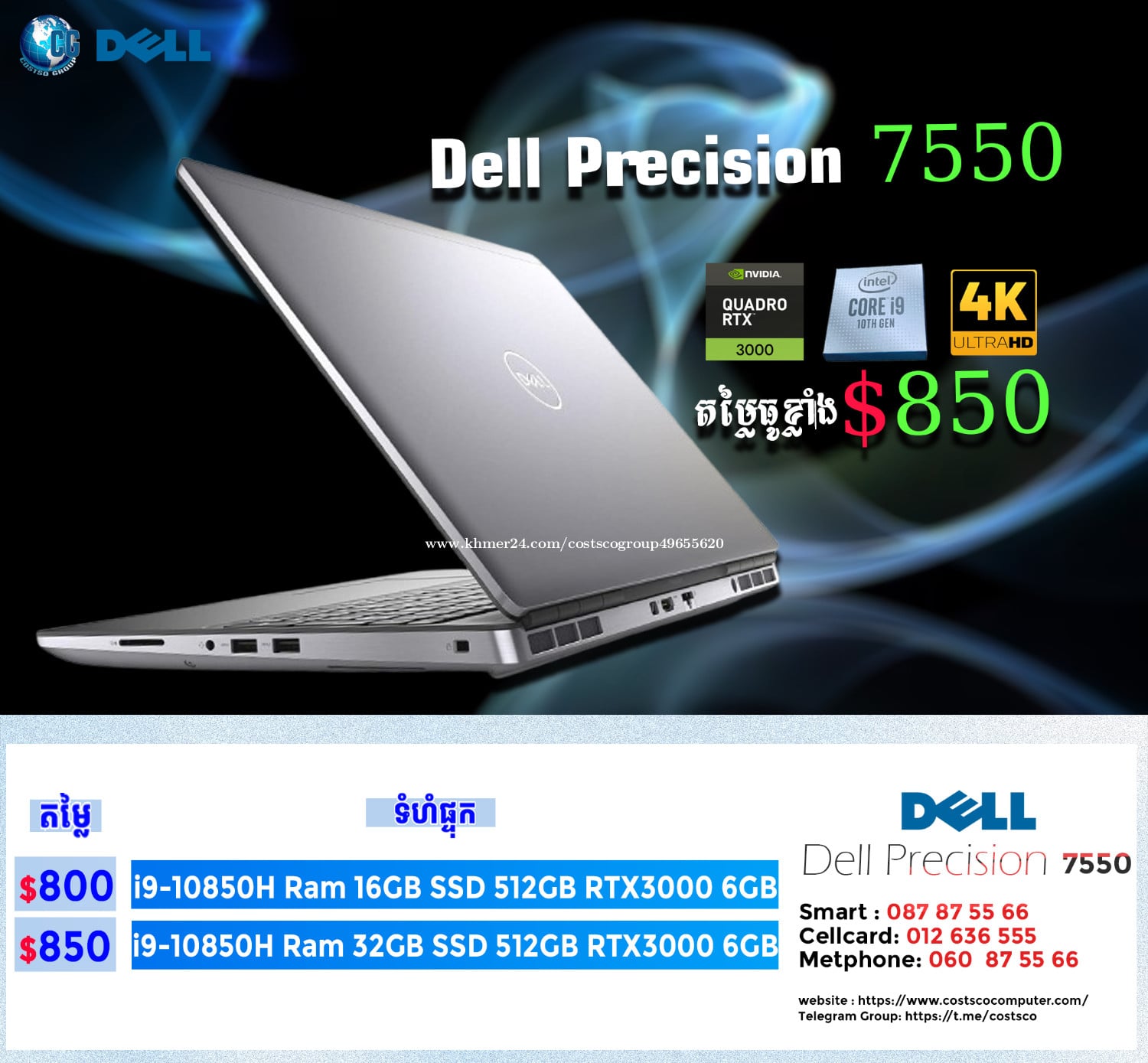 Dell Precision 7550 | i9-10885H | 15.6" 16GB/32GB | 512 SSD | FHD | RTX 3000 | Backlit keyboard | Webcam | Win 11 Pro | US