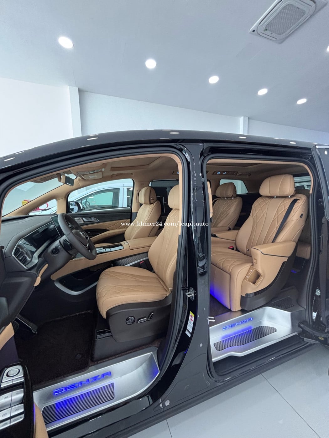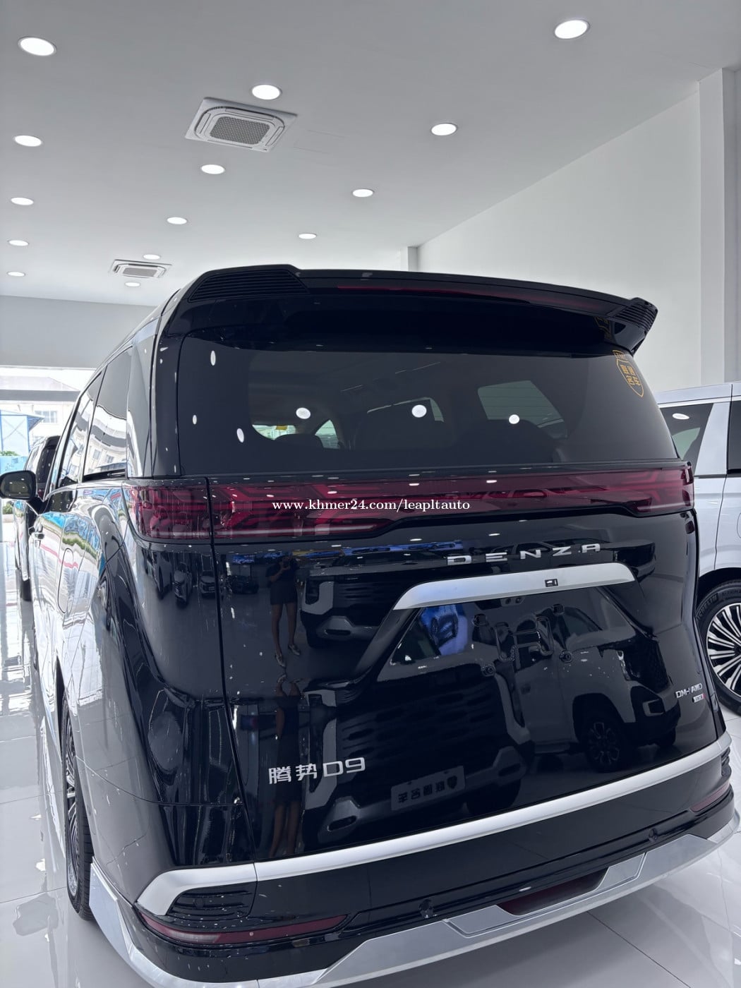 Denza D9 DM-i 980 AWD ម៉ាសុីន 1.5T កម្លាំងម៉ាស៊ីន: 139 PS កម្លាំងបង្វិលម៉ាស៊ីន: 231 N·m កម្លាំងម៉ូទ័រសរុប៖ ២៩២ សេះ កម្លាំងបង្វិលម៉ូទ័រសរុប: 450 N·m ថាមពលអតិបរមានៃម៉ូទ័រខាងមុខ: 170kw កម្លាំងបង្វិលអតិបរមានៃម៉ូទ័រខាងមុខ: 340N·m ថាមពលអតិបរមានៃម៉ូទ័រខាងក្រោយ: 45kw កម្លាំងបង្វិលអតិបរមានៃម៉ូទ័រខាងក្រោយ: 110N·m កម្លាំងបង្វិលជុំនៃប្រព័ន្ធ: 681 N·m 0-100 គីឡូម៉ែត្រ / ម៉ោង: 7.9 វិនាទី ការប្រើប្រាស់ប្រេងរួមបញ្ចូលគ្នា WLTC: 1.06 L/100km - ការប្រើប្រាស់ប្រេងឥន្ធនៈអប្បបរមា៖ ៦.៧ លីត្រ / ១០០ គីឡូម៉ែត្រ - ល្បឿនអតិបរមា៖ ១៨០ គីឡូម៉ែត្រក្នុងមួយម៉ោង -ជួរអគ្គិសនីសុទ្ធ CLTC: 190 គីទ្បូ - ទំហំអាគុយ 40 kWh - ធុងសាំង៖ ៥៣ លីត្រ ថាមពលសាកលឿន៖ 80kw រយៈពេលសាកលឿន៖ 0.42 ម៉ោង។ ថាមពលបញ្ចេញខាងក្រៅ: 6 kw ទំហំ៖ ៥២៥០ × ១៩៦០ × ១៩២០ ម។ ប្រភេទ full options ឆ្នាំ2025 ការធានា: 6 ឆ្នាំឬ 150,000 គីឡូម៉ែត្រ តម្លៃចរចារបាន