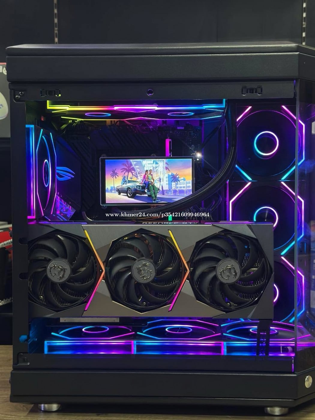 Desktop Clone Design And Gaming ✅CPU-Intel Core I5 10600KF 4.10GHz ✅RAM-32G G-Skill Triden Z 3600MHz ✅M/B-Asus Rog Strix Z 490 F-Gaming ✅Cooler-Leopard Pro Flow 240 LCD Display (ថ្មី) ✅M.2-512G NVMe Legend 710 (ថ្មី) ✅VGA-MSI RTX 3070Ti Suprime 8G 256Bit ✅Power-RUIX 850W 80Plus PCie 3.0 (ថ្មី) ✅Case-WJCOOLMAN Y40-6F Fan ARGB Suport Aura Sync (ថ្មី) 💥Price 899$ Desktop Clone Design And Gaming ✅CPU-Intel Core I5 10600KF 4.10GHz ✅RAM-32G G-Skill Triden Z 3600MHz ✅M/B-Asus Rog Strix Z 490 F-Gaming ✅Cooler-Leopard Pro Flow 240 LCD Display (ថ្មី) ✅M.2-512G NVMe Legend 710 (ថ្មី) ✅VGA-Gigabytes RTX 3060 12G OC 3X ✅Power-RUIX 850W 80Plus PCie 3.0 (ថ្មី) ✅Case-WJCOOLMAN Y40-6F Fan ARGB Suport Aura Sync (ថ្មី) 💥799$