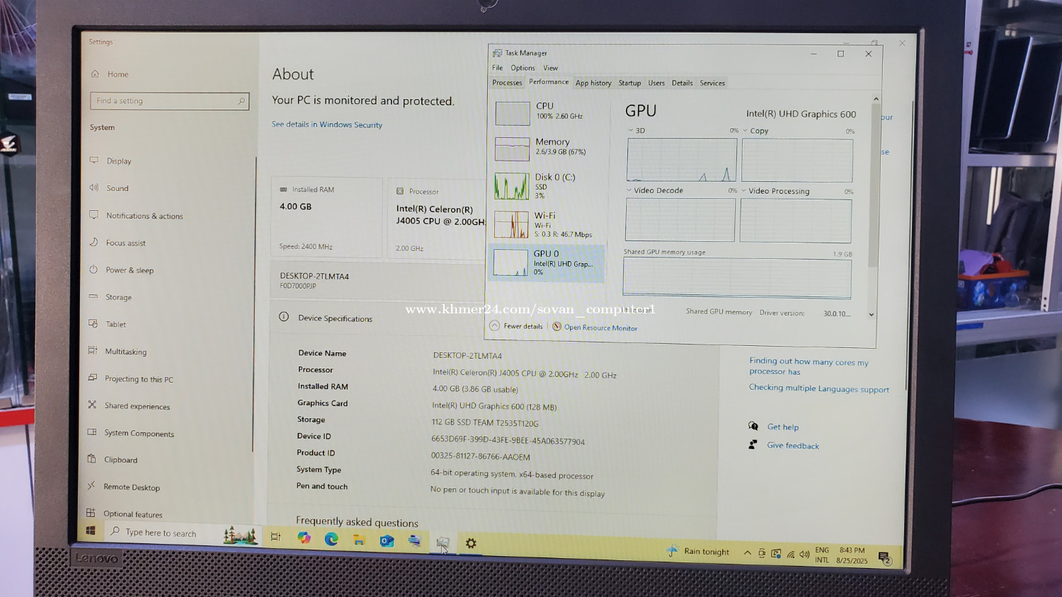 All in one Lenovo ideacentre 330-20IGM -CPU intel Celeron J4005 2.0GHz -Ram 4G DDR4 -SSD 120G -Screen 20 inch -GPU Intel UHD Graphics 600 -Windows 10 -Port USB 3.0 / HDMI / wifi / Bluetooth / Webcam -Warranty 1 Month ---------- សម្រាប់ព័ត៌មានបន្ថែមសូមទំនាក់ទំនងមកយើងខ្ញុំ ☎️012463xxxClick To Call / 093317xxxClick To Call 📡Telegram : https://t.me/sovancomputer 🌏www.sovancomputer.com 🫰Tik Tok : www.tiktok.com/@sovancomputer 🧚♂️Khmer24 : https://www.khmer24.com/sovan_computer1 ▶️Youtube Channel : https://www.youtube.com/@sovancomputer2958/videos 🗺ផែនទីហាងយើងខ្ញុំ https://goo.gl/maps/6oMaL4vCWuufnt83A 🏠អាស័យដ្ធាន Address : ផ្ទះលេខ ១៨B ផ្លូវ៣៣៦ សង្កាត់វាលវង់ ខណ្ឌ៧មករា រាជធានីភ្នំពេញ (ខាងក្រោយវត្តព្រះពុទ្ធមានបុណ្យ)