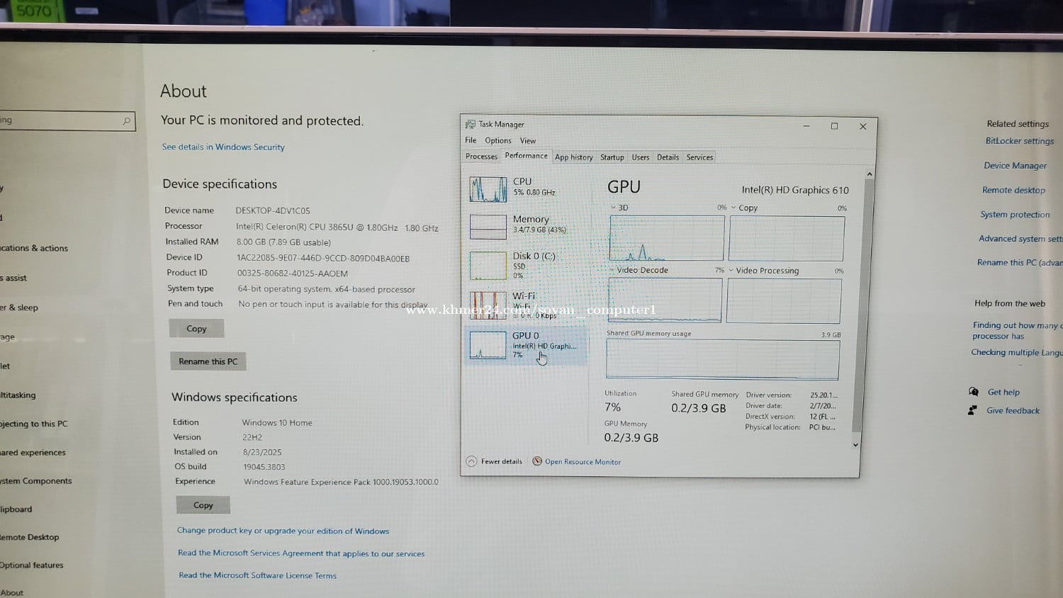 Desktop All in One Nec -CPU intel Celeron 3665U 1.80GHz ជំនាន់ទី ៧ -Ram 8G DDR4 -SSD 128G -Screen 24 inch FHD IPS អេក្រង់ពេញល្អ អត់គែម -GPU Intel HD Graphics 610 -USB 3.0 / DHMI / DVD / SD Port -Speaker Yamaha សំលេងខ្លាំងល្អ ពិរោះ -Windwos 10 Prl -Warranty 1 Month ---------- សម្រាប់ព័ត៌មានបន្ថែមសូមទំនាក់ទំនងមកយើងខ្ញុំ ☎️012463xxxClick To Call / 093317xxxClick To Call 📡Telegram : https://t.me/sovancomputer 🌏www.sovancomputer.com 🫰Tik Tok : www.tiktok.com/@sovancomputer 🧚♂️Khmer24 : https://www.khmer24.com/sovan_computer1 ▶️Youtube Channel : https://www.youtube.com/@sovancomputer2958/videos 🗺ផែនទីហាងយើងខ្ញុំ https://goo.gl/maps/6oMaL4vCWuufnt83A 🏠អាស័យដ្ធាន Address : ផ្ទះលេខ ១៨B ផ្លូវ៣៣៦ សង្កាត់វាលវង់ ខណ្ឌ៧មករា រាជធានីភ្នំពេញ (ខាងក្រោយវត្តព្រះពុទ្ធមានបុណ្យ)