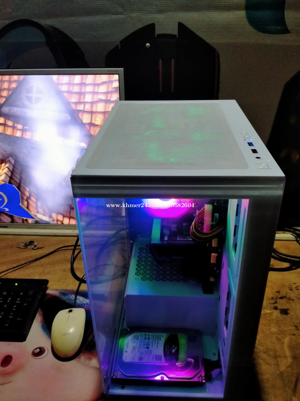 Desktop Clone Board ASUS CPU Corei7 4Gen (8CPUs) RAM DDR3 16GB ( RAM មានដែកត្រដាក់ការពារកំដៅ) SSD 256GB + HDD 500GB VGA GT 1030 2GB Case Gaming + Fan RGB + Fan CPU RGB Monitor BENQ 24inch Display Port( HDMI,VGA, DVI) Mouse + keyboard+ Mousepad Gaming+ Wi-Fi USB+ Speaker Warranty 1month on Machine