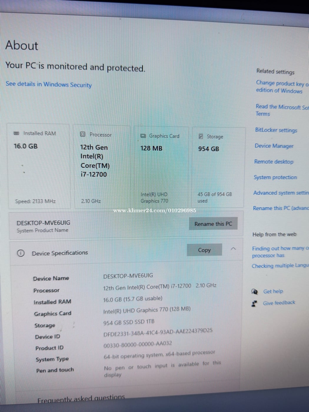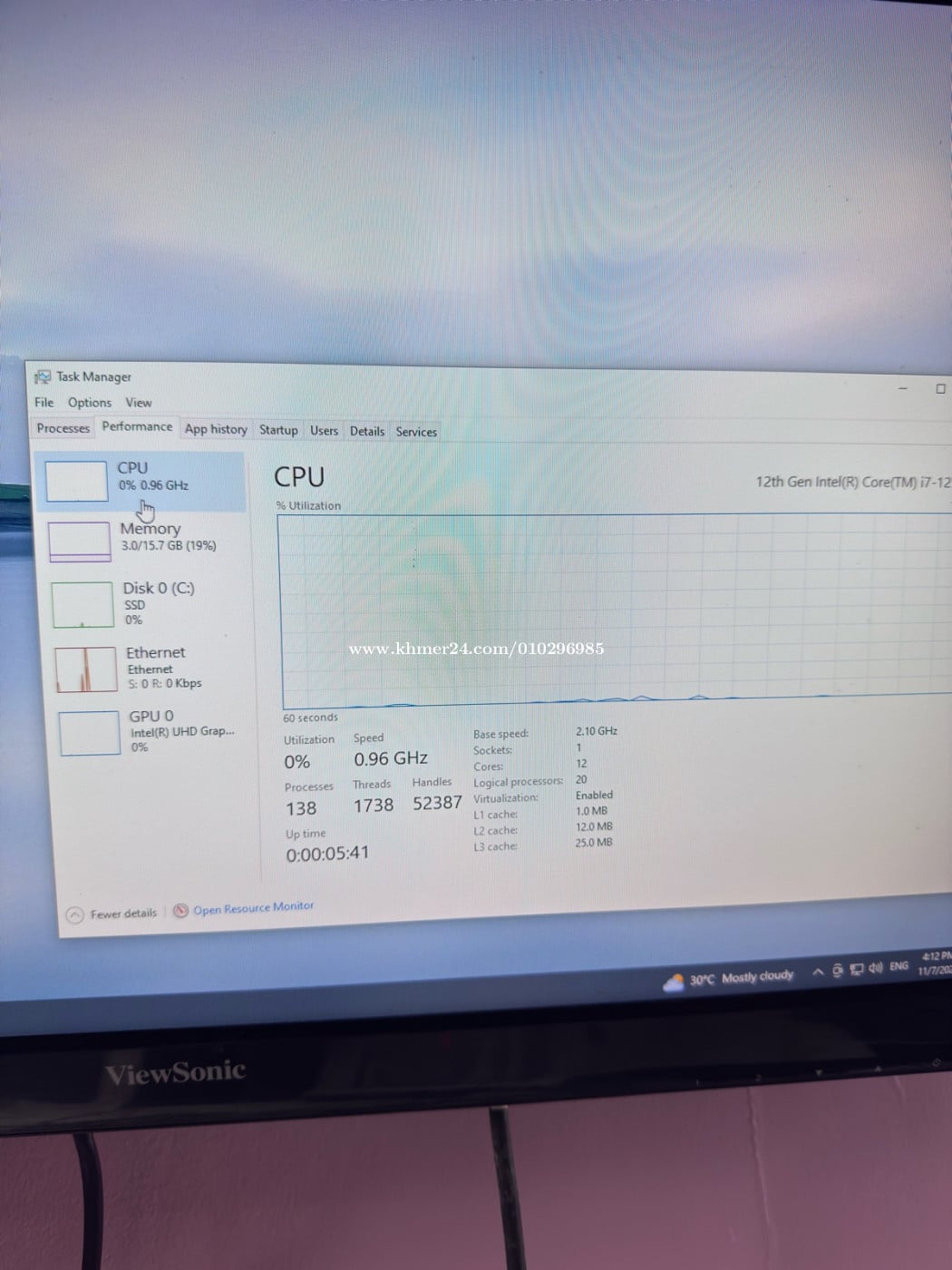 Desktop Gaming Only machine: CPU: Intel Core i7-12700 CPU @ 2.10GHz (12Cores, 20Threads) RAM: 16G x1 2666MHz HYPERX Mainboard: PRIME H610M-K D4 (Brand Asus) VGA on board: Intel UHD Graphics 770 VGA card: No Case: Gaming white color has 4Fan RGB and 2Fan normal Storage: SSD TB PSU: 500W Price: 400$ Warranty 14days Tel: 010296xxxClick To Call Join group telegram below: https://t.me/+bAISWOCCOsw3ODJl --------------------------------- អាសយដ្ឋាន: ភូមិ 05 សង្កាត់ 04 ក្រុងព្រះសីហនុ, ខេត្តព្រះសីហនុ (ក្រោយសាលាហ៊ុនសែនមិត្តភាព ហៅសាលាអូរ2 ទល់មុខអាគារខុនដូរ LZ) Address: Village 05, Commune 04, Sihanoukville, Province. Link google map below: លីងផែនទី Google នៅខាងក្រោមនេះ: https://maps.app.goo.gl/BrZM4EoDXwDiVULT7?g_st=ic