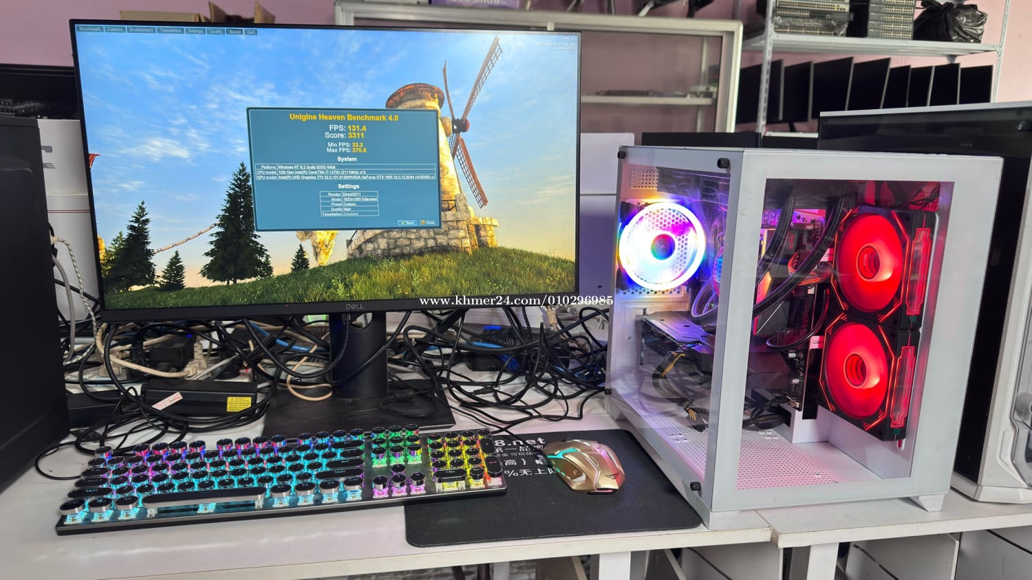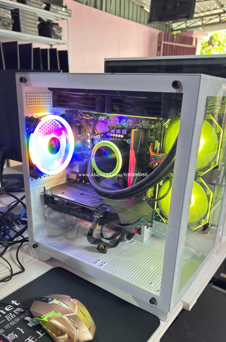 Desktop Gaming 1Set (New mix secondhand): ➡️CPU: Intel Core i7-12700 @2.10GHz to 4.90GHz (12Cores, 20Threads) ➡️ RAM: 16G RGB XPG 3200MHz ➡️ Mainboard: B760M H DDR4 ➡️ VGA card: GTX 1660 Super Gigabyte ➡️ Case: Gaming Glass White color ➡️CPU FAN: Liguid cooler 2fan RGB Brand Lovingcool ➡️FAN: Fan RGB have 3nits (New) ➡️ARGB: ARGB Remote controller (New) ➡️ Storage: M.2 NVMe 1TB Kingston 4.0 ➡️ Monitor: Dell 27 inch 75Hz model: P2719H ➡️ PSU: 550W ➡️ Free: Mouse keyboard RGB & Mousepad ➡️ Price: 588$ ➡️ Warranty 30days ➡️ Tel: 010296xxxClick To Call Join group telegram below: https://t.me/+bAISWOCCOsw3ODJl --------------------------------- អាសយដ្ឋាន: ភូមិ 05 សង្កាត់ 04 ក្រុងព្រះសីហនុ, ខេត្តព្រះសីហនុ (ក្រោយសាលាហ៊ុនសែនមិត្តភាព ហៅសាលាអូរ2 ទល់មុខអាគារខុនដូរ LZ) Address: Village 05, Commune 04, Sihanoukville, Province. Link google map below: លីងផែនទី Google នៅខាងក្រោមនេះ: https://maps.app.goo.gl/BrZM4EoDXwDiVULT7?g_st=ic