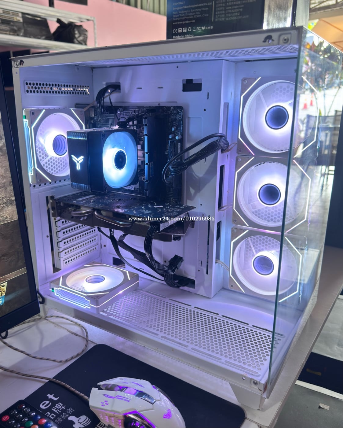 Desktop Gaming 1set (Used) ➡️CPU: Intel Core i7-11700 @2.50GHz to 4.90GHz (8Cores, 16Threads) ➡️ RAM: 16G (16x1) 2666MHz Colorful ➡️ Mainboard: H510M-A PRO (MS-7D22) ➡️ VGA card: Colorful GTX 1060 (6G) GDDR5 ➡️ Case: Gaming white color (No have cover) ➡️ Storage: M.2 NVMe 512G Micron ➡️ Monitor: ASUS VZ279HE 27" 75Hz ➡️ Free: Mouse keyboard RGB & Mousepad ➡️ PSU: 650W ➡️ Aire CPU Cooler model: CR-1400 EV New ➡️ Remote RGB controller brand SUMTAX New ➡️ Price: 460$ ➡️ Warranty 30days ➡️ Tel: 010296xxxClick To Call Join group telegram below: https://t.me/+bAISWOCCOsw3ODJl --------------------------------- អាសយដ្ឋាន: ភូមិ 05 សង្កាត់ 04 ក្រុងព្រះសីហនុ, ខេត្តព្រះសីហនុ (ក្រោយសាលាហ៊ុនសែនមិត្តភាព ហៅសាលាអូរ2 ទល់មុខអាគារខុនដូរ LZ) Address: Village 05, Commune 04, Sihanoukville, Province. Link google map below: លីងផែនទី Google នៅខាងក្រោមនេះ: https://maps.app.goo.gl/BrZM4EoDXwDiVULT7?g_st=ic