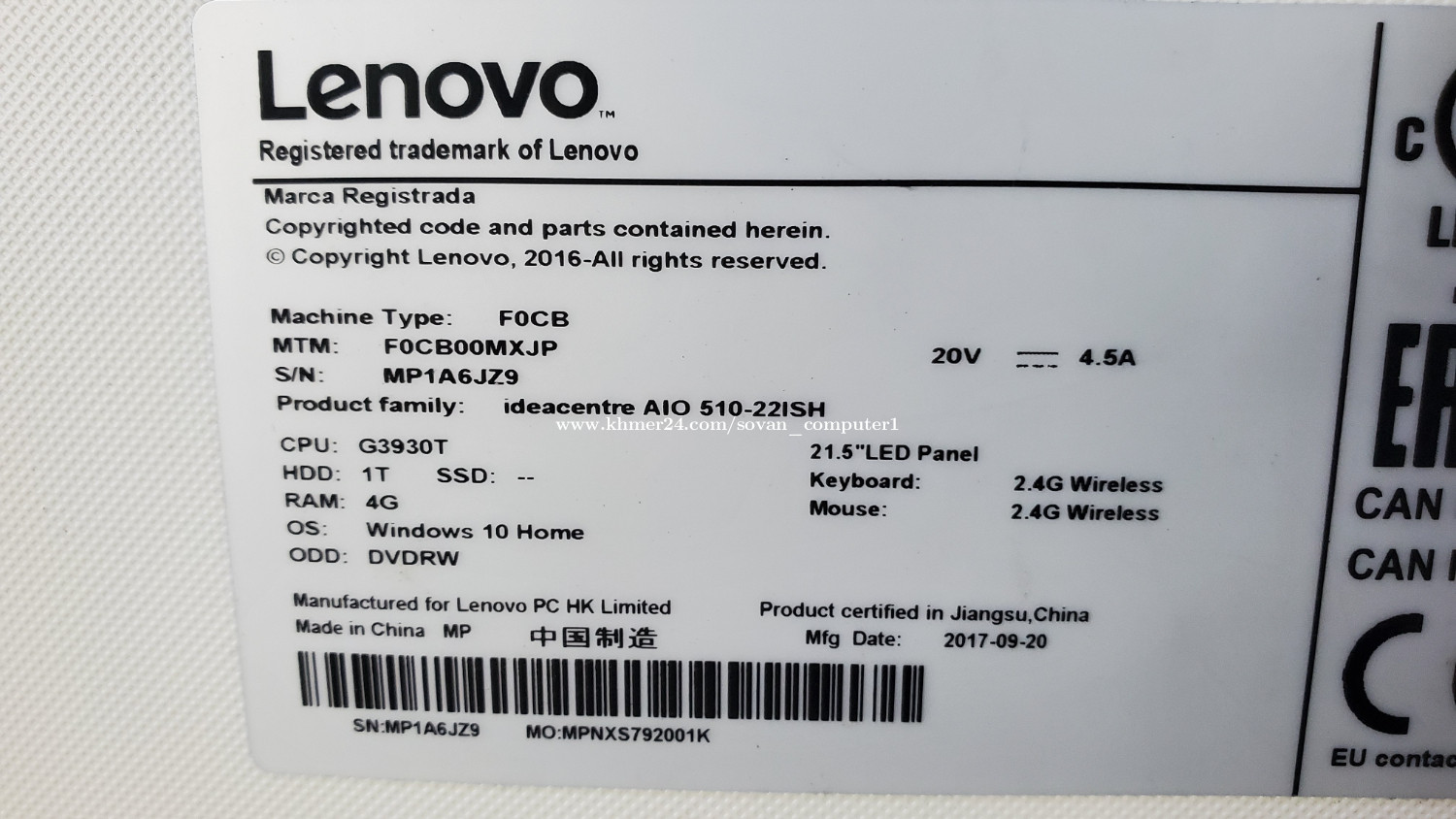 Desktop All in one Lenovo ideacentre AIO 510-22ISH -CPU intel Core i3-6100 3.7GHz -Ram 8G DDR4 -M.2 240G WD -Screen 22 inch FHD -GPU intel HD Graphics 530 -Windows 10 -Port USB 3.0 / HDMI / DVD / Webcam / wifi -warranty 1 Month ---------- សម្រាប់ព័ត៌មានបន្ថែមសូមទំនាក់ទំនងមកយើងខ្ញុំ ☎️012463xxxClick To Call / 093317xxxClick To Call 📡Telegram : https://t.me/sovancomputer 🌏www.sovancomputer.com 🫰Tik Tok : www.tiktok.com/@sovancomputer 🧚♂️Khmer24 : https://www.khmer24.com/sovan_computer1 ▶️Youtube Channel : https://www.youtube.com/@sovancomputer2958/videos 🗺ផែនទីហាងយើងខ្ញុំ https://goo.gl/maps/6oMaL4vCWuufnt83A 🏠អាស័យដ្ធាន Address : ផ្ទះលេខ ១៨B ផ្លូវ៣៣៦ សង្កាត់វាលវង់ ខណ្ឌ៧មករា រាជធានីភ្នំពេញ (ខាងក្រោយវត្តព្រះពុទ្ធមានបុណ្យ)