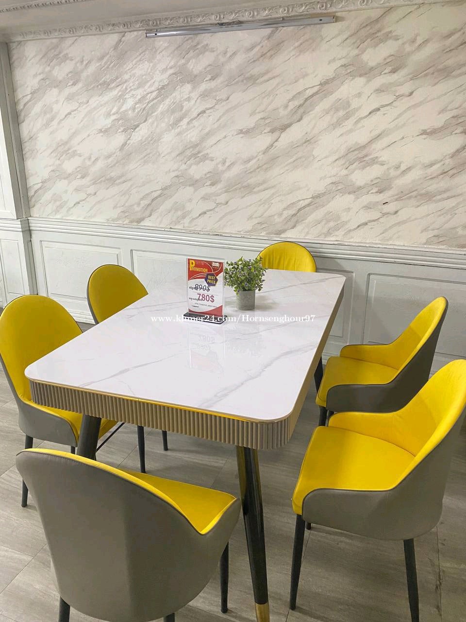 -Dining Set Available in Stock -Price 430$ -New 100% -Chair :6 -Free Install -Free delivery in Phnom Penh -Interested kindly contact: @SenghourFurniture168